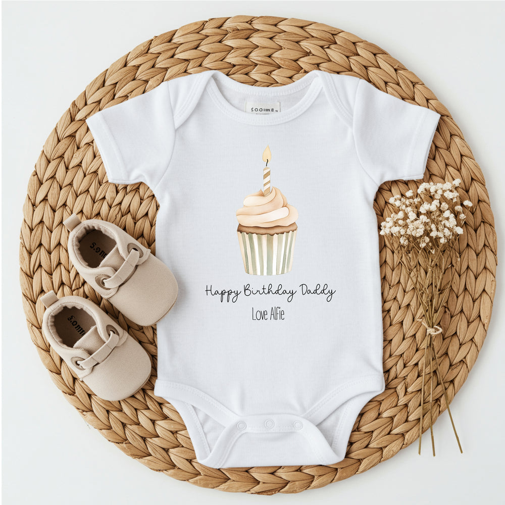 Personalised Cupcake Happy Birthday Babygrow/Vest