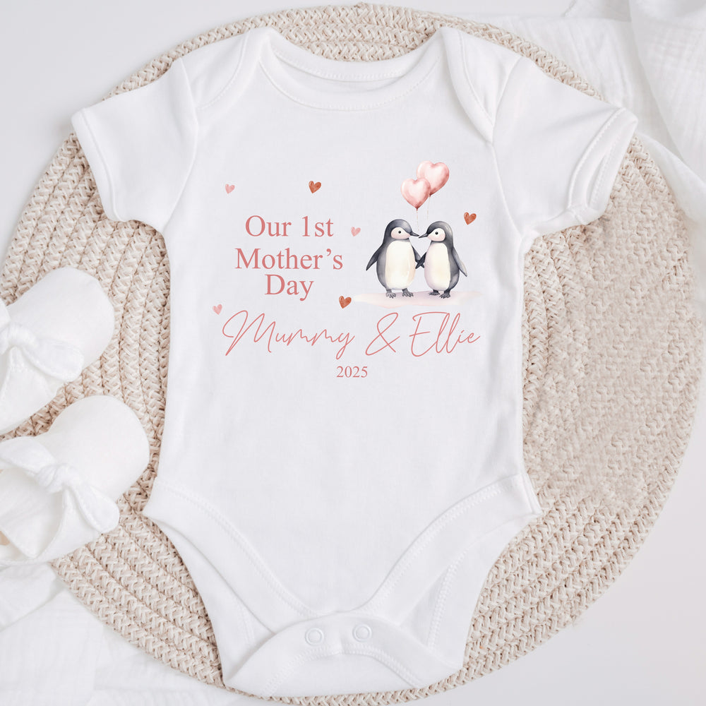 Personalised First Mother's Day Penguins Babygrow/Vest