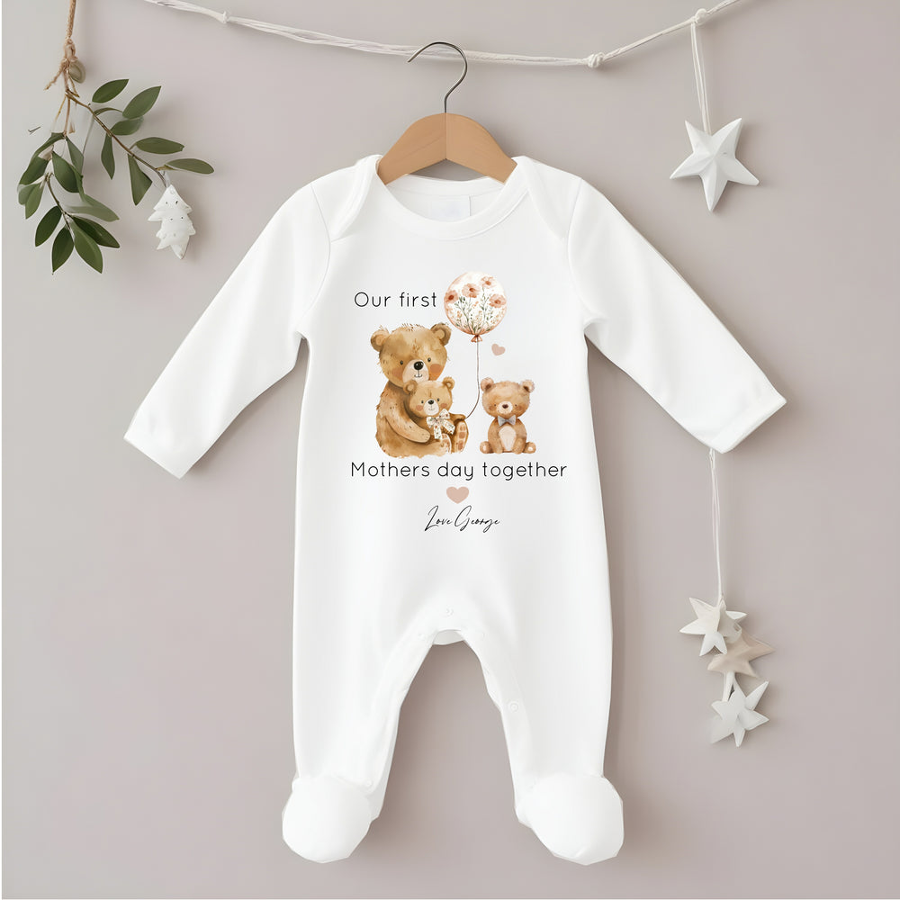 Personalised Our First Mother's Day Bear Balloons Babygrow/Vest