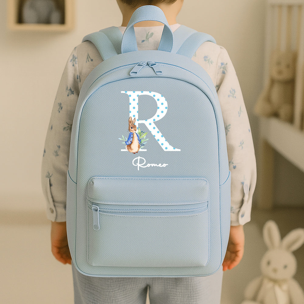 Personalised Blue Rabbit Spotty Initial Backpack