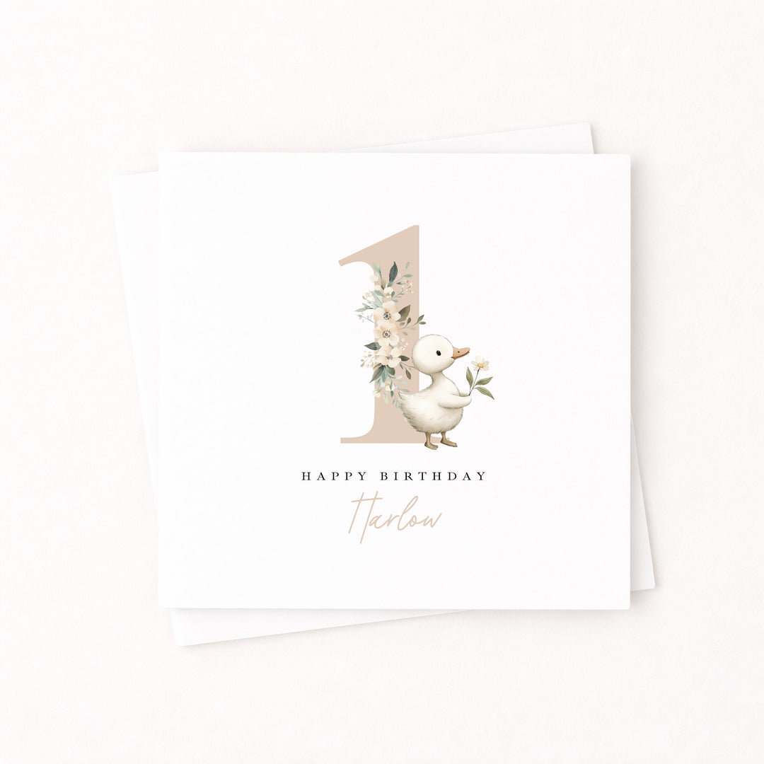 Personalised Beige Duck Birthday Card