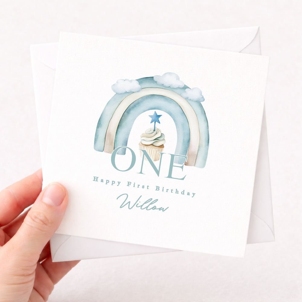 Personalised Blue Rainbow Birthday Card