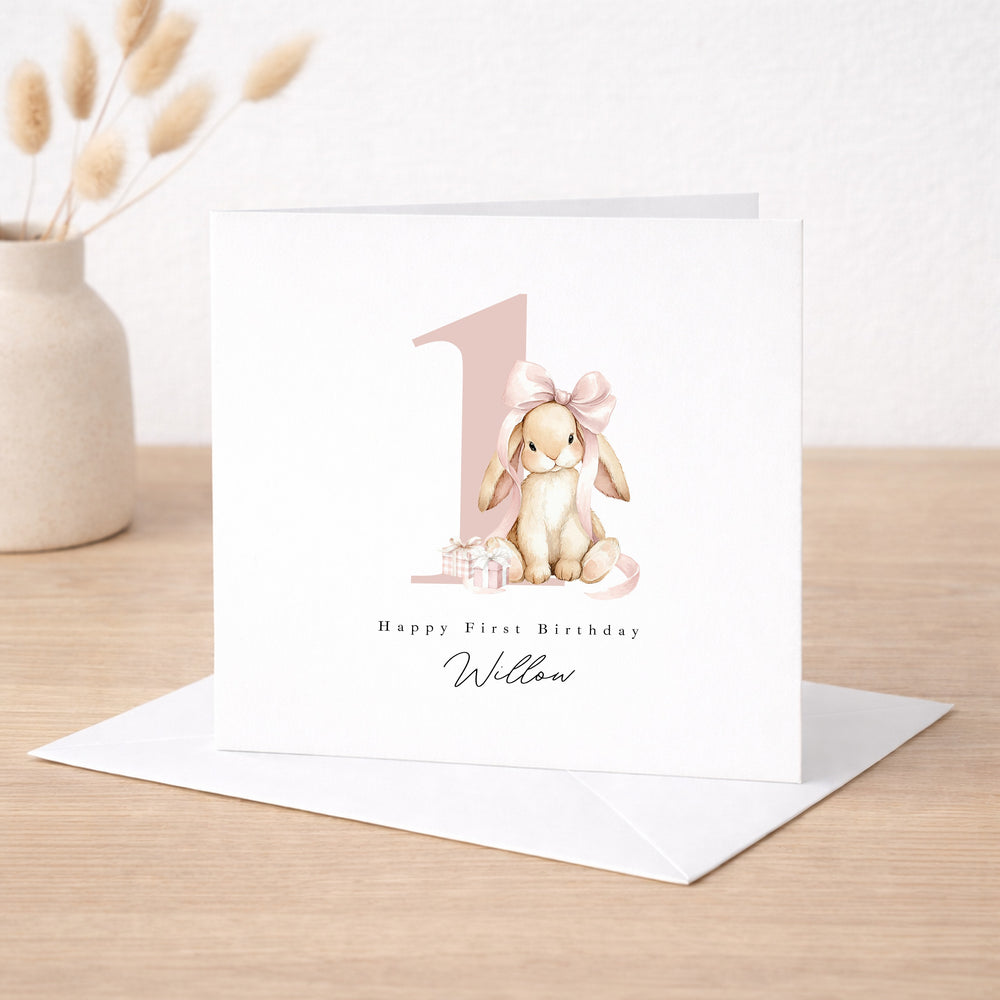 Personalised Pink Bow Bunny Birthday Card