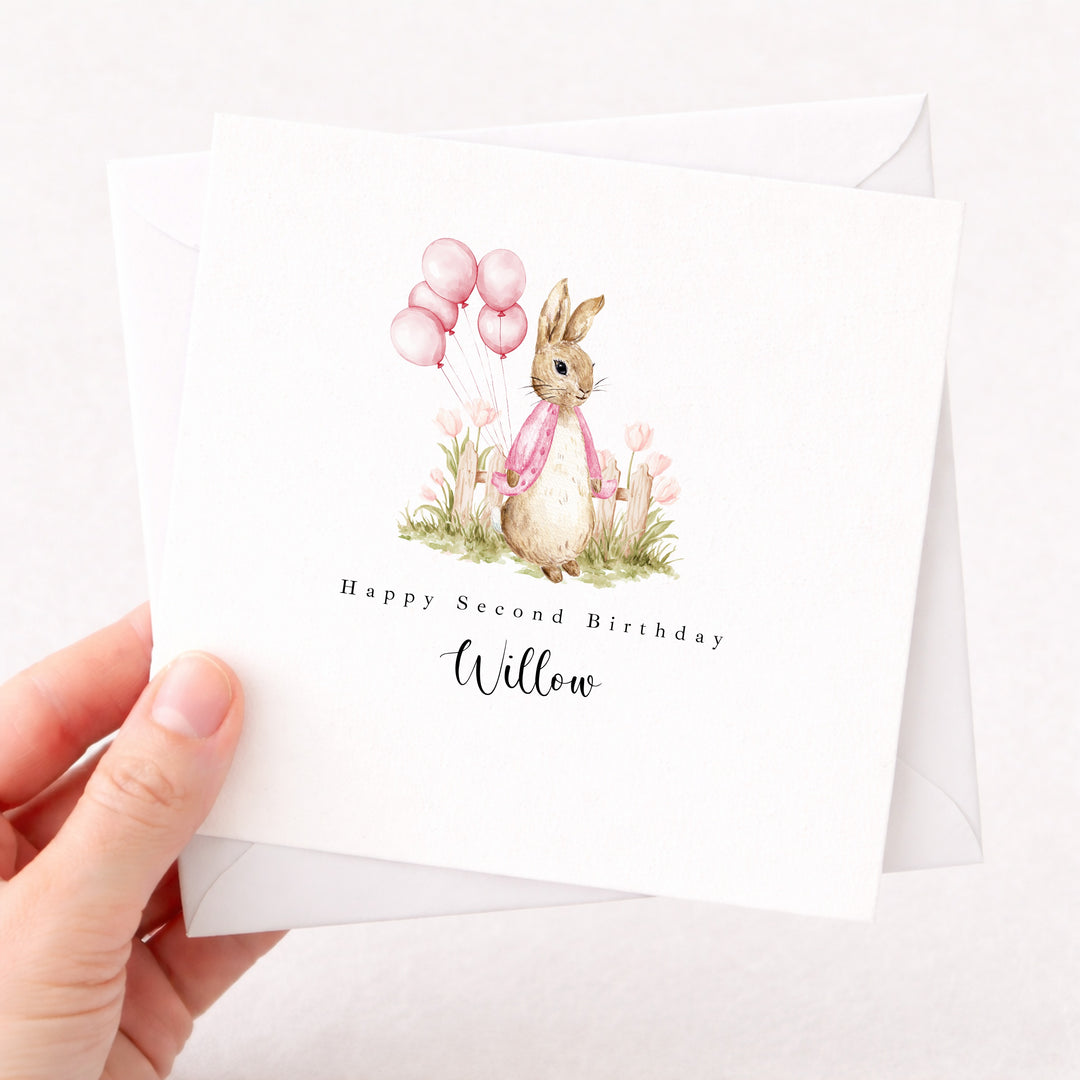 Personalised Pink Rabbit Garden Birthday Card