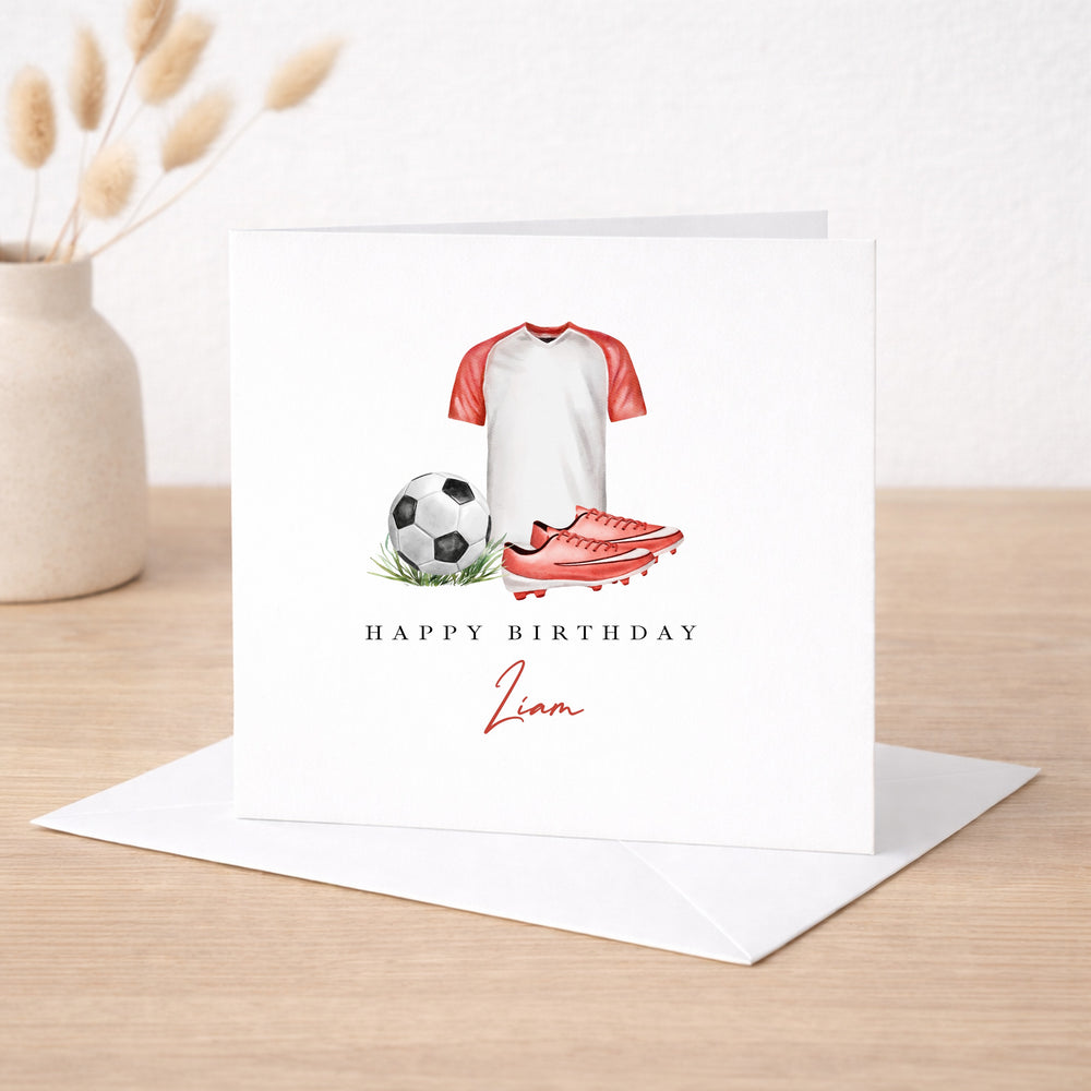 Personalised Red Football Happy Birthday Card