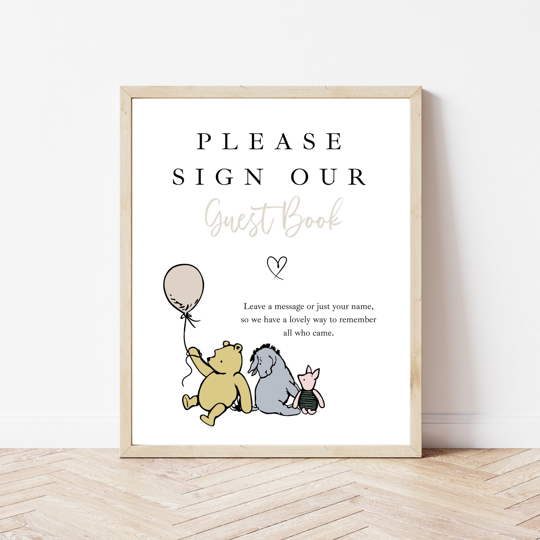 Personalised Beige Pooh Bear First Birthday Party Guest Book