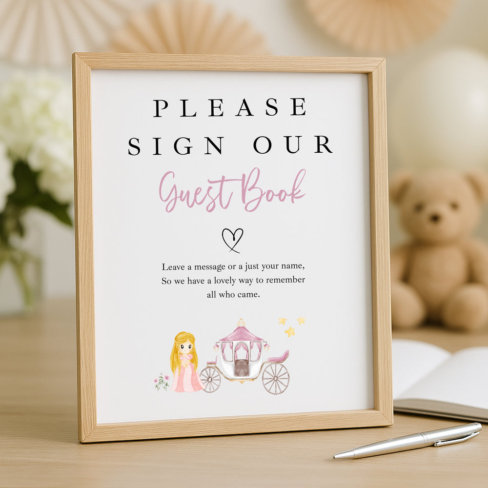 Personalised Pink Princess Birthday Party Guest Book