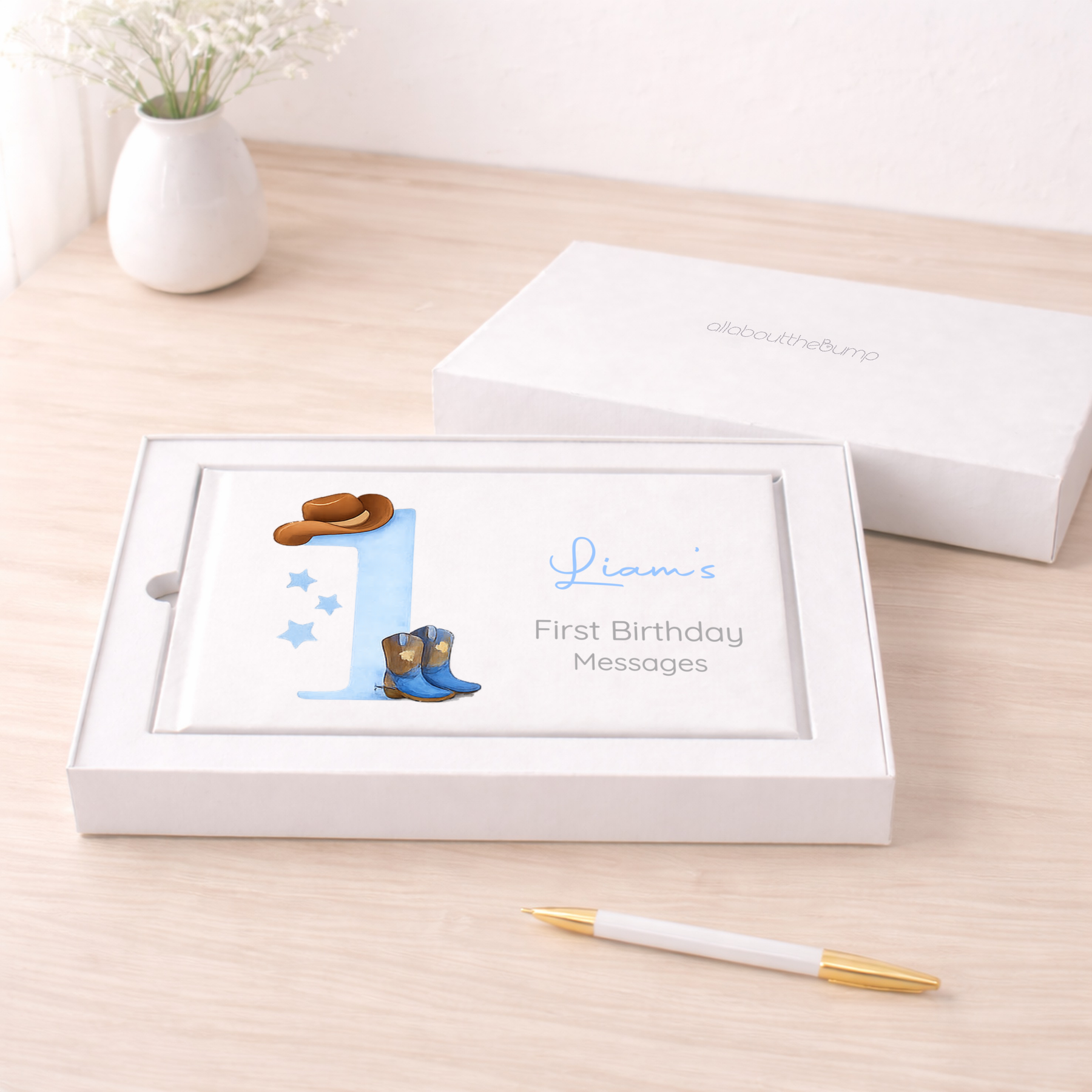 Celebrate your little one’s first birthday with this elegant, personalized guest book. Measuring 23cm x 17.5cm, this beautiful keepsake features 80 lined pages, perfect for guests to leave heartfelt messages, memories, and well-wishes for the birthday boy or girl.