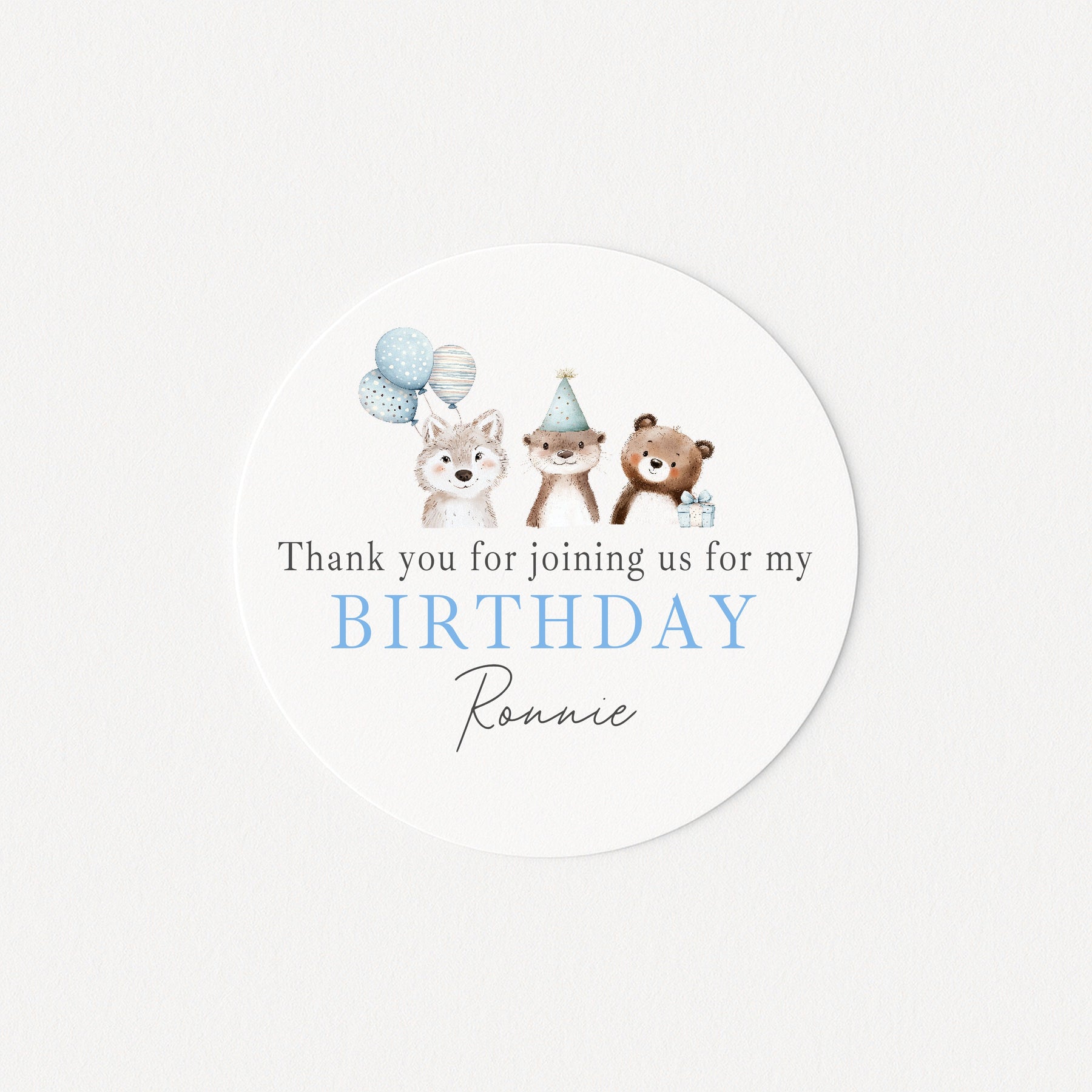 Personalised Blue Party Animals Birthday Stickers