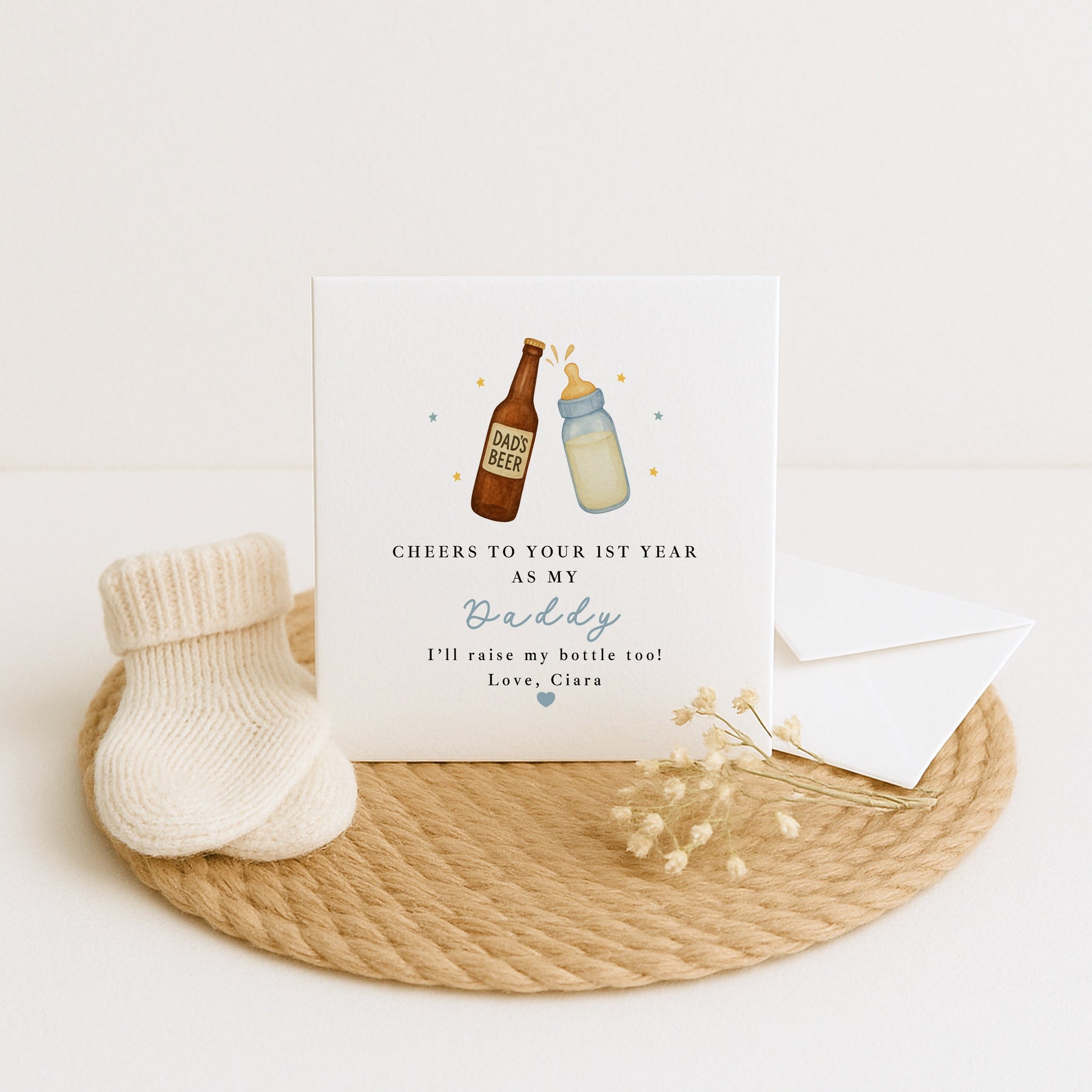 Celebrate the man who means everything with this charming personalised birthday card. Featuring a cheerful blue design with a "Cheers" theme, it's the perfect way to toast to another year of memories together. Personalise it with Dad's name to add that special touch that shows you've put thought into his day. Whether he's a beer enthusiast or simply loves a good celebration, this card delivers warmth and humour in equal measure. Make his birthday unforgettable with a greeting that's as unique as he is.