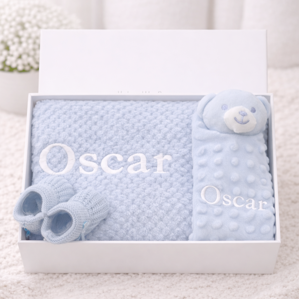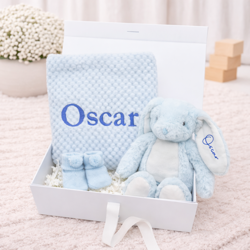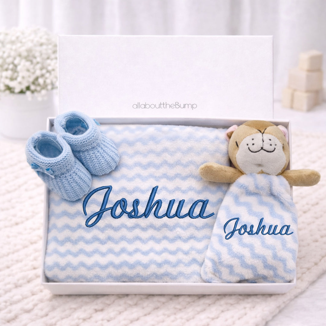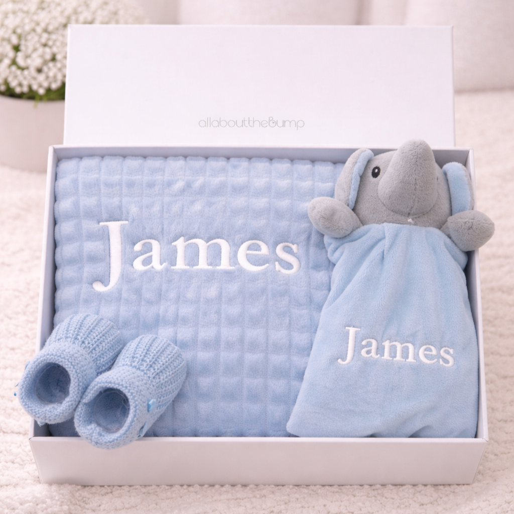 Celebrate the arrival of a little one with our beautifully curated Boys Gift Hampers at Allaboutthebump, the perfect choice for thoughtful and memorable new baby boy gifts. Our personalised baby boy gift hampers are carefully designed with high-quality essentials and keepsakes, making them ideal for baby showers, newborn arrivals or even christenings. Each hamper has been create to be a truly special present, combining practicality with sentimental charm.