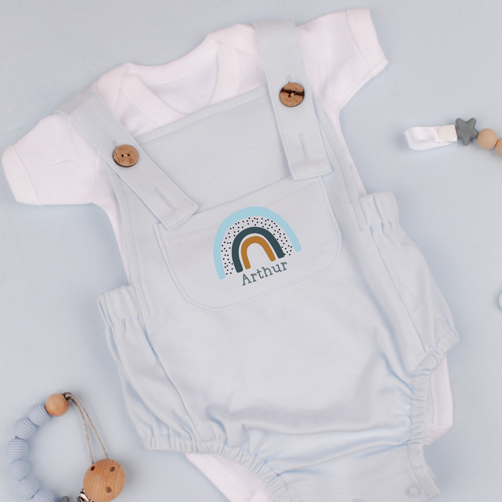 Welcome your little one home in style with our Personalised Blue Rainbow Dungarees! These adorable dungarees are perfect for summer wear and can be personalized for a special touch. Give your baby the cutest coming home outfit that will have everyone gushing. Dress your bundle of joy in comfort and style.