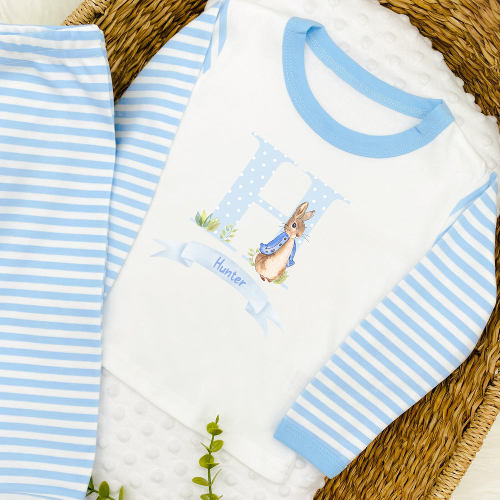 Personalised Spotty Blue Rabbit Blue Stripe Pyjamas