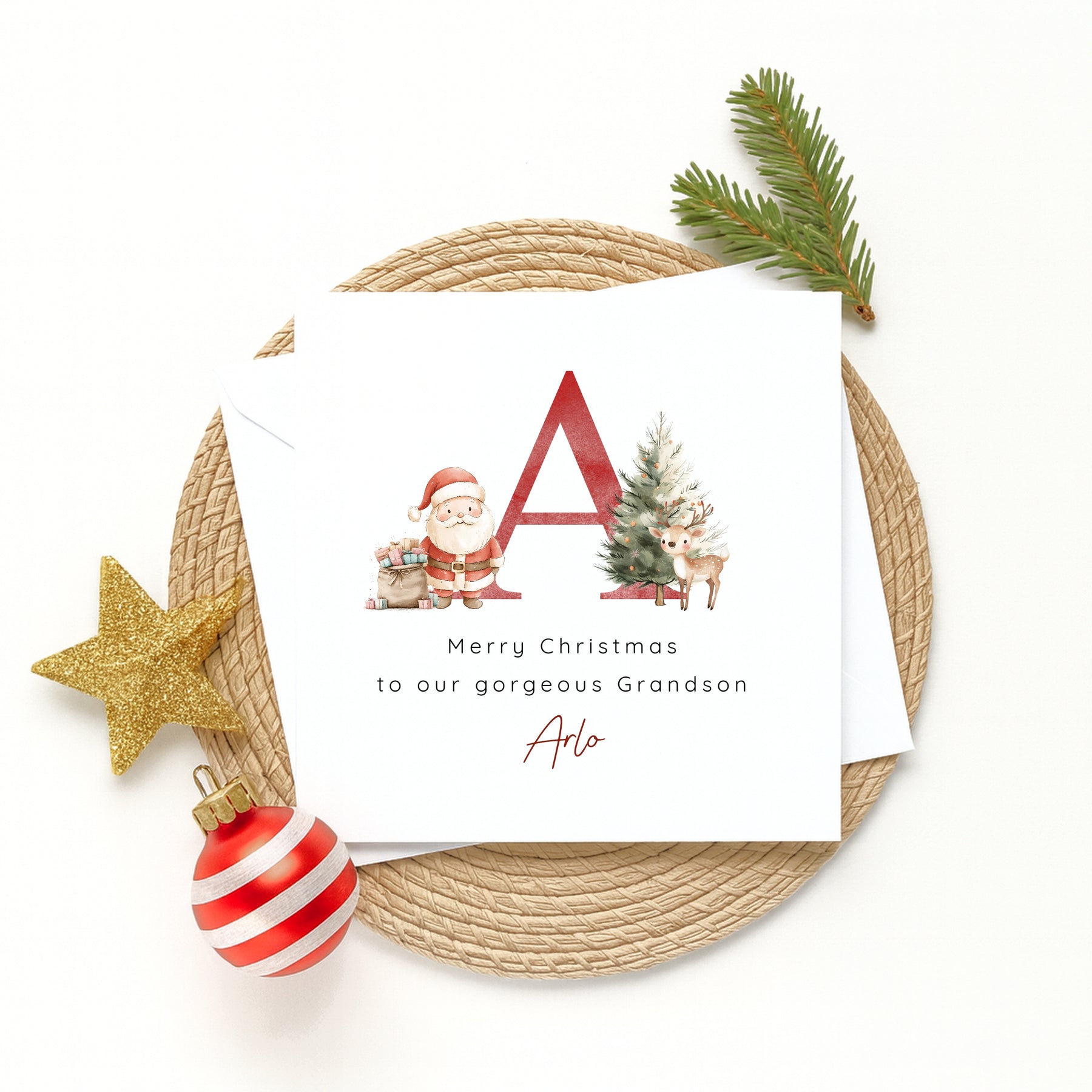 Celebrate the festive season with a Personalised Christmas Initial Card, uniquely designed to add a special touch. Featuring a custom initial, this card is perfect for sending warm wishes to loved ones. Its thoughtful personalization makes your greeting heartfelt and memorable, helping you express your holiday cheer in a meaningful way. Simple yet charming, it’s ideal for sharing joy and making Christmas connections even more personal. These cards are blank inside and come with a matching white envolope