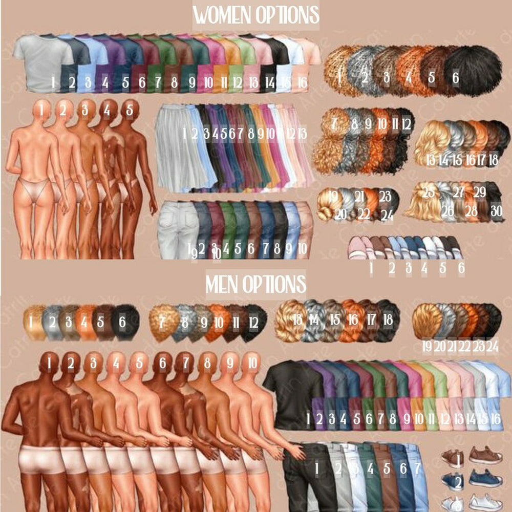 Please make sure to choose the numbers from the photos in the listing. E.G, Adult Hair 2, Top 3, Shoes 4. Baby Top 2, Hair 5