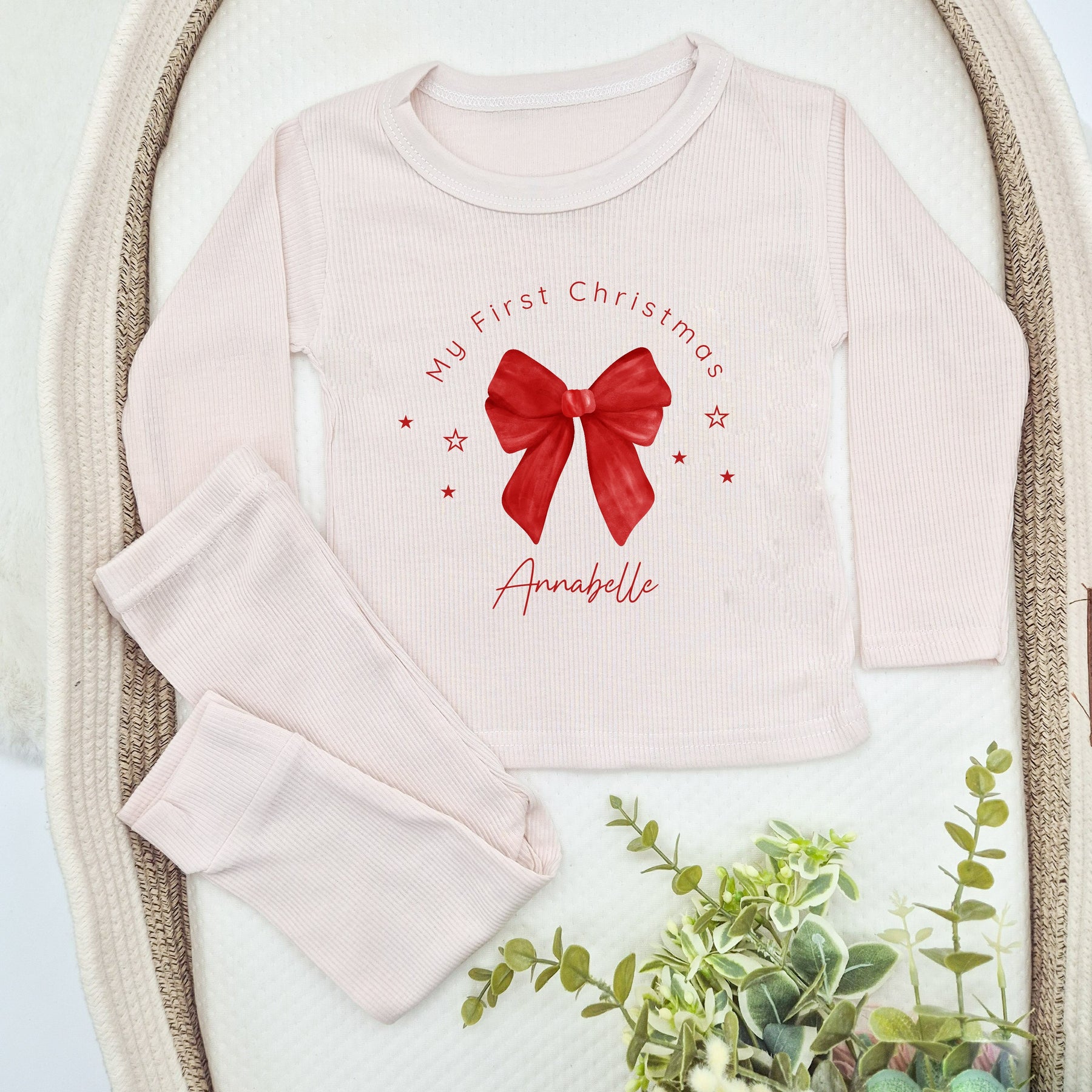 Embrace the festive season in cozy comfort with our Personalised Red Bow Christmas Ribbed Loungewear. Crafted from soft ribbed fabric, this set offers warmth and flexibility for relaxing days at home. The charming red bow adds a touch of holiday cheer, while the personalised detail makes it uniquely yours—perfect for making special memories or gifting a loved one with something truly thoughtful.