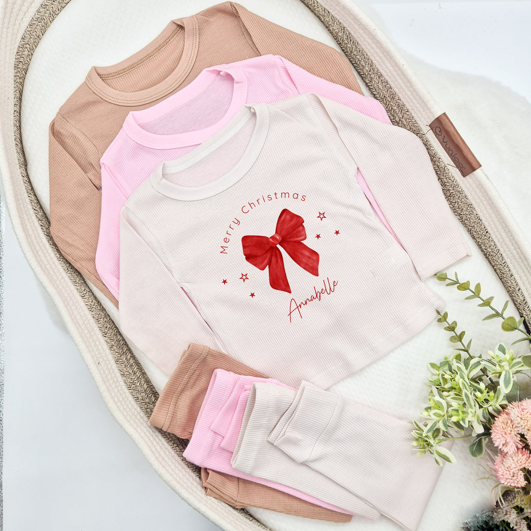 Personalised Pink Rabbit Christmas Ribbed Loungewear