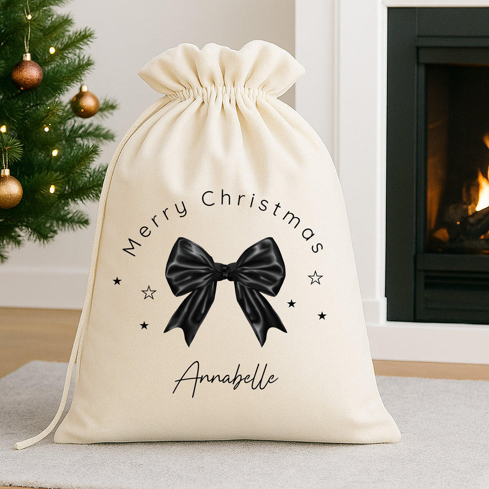 Personalised Black Bow Merry Christmas Santa Sack or Stocking