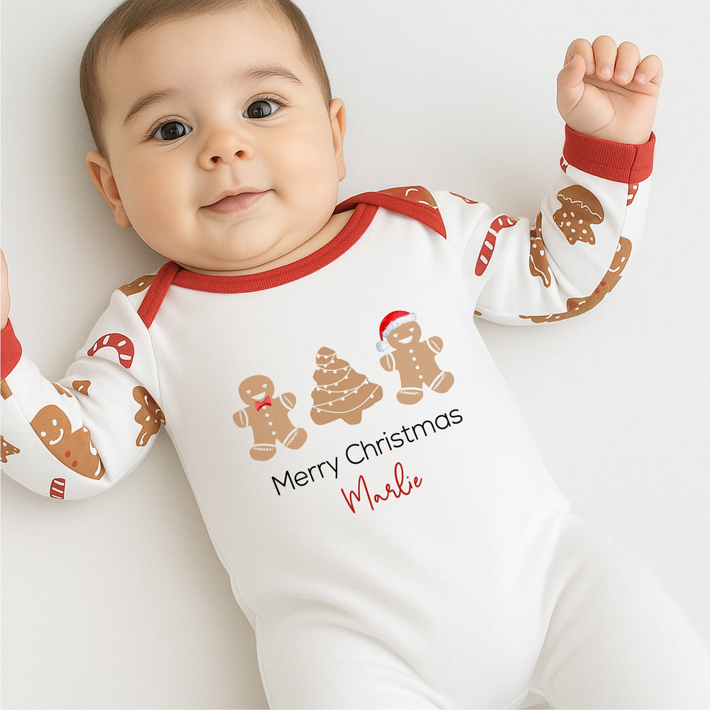 Personalised Merry Christmas Sibling Matching Gingerbread Pyjamas/Babygrow