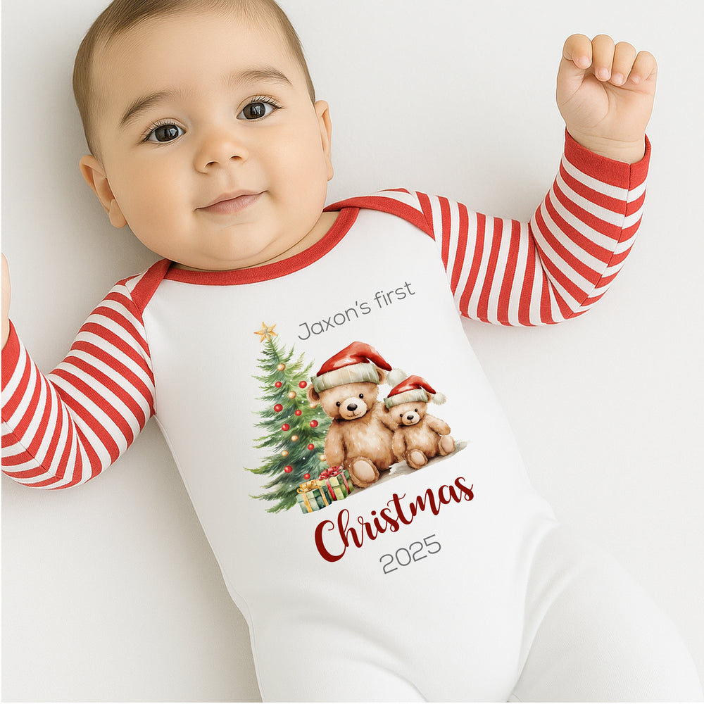 Personalised Red Bears Sibling Matching Babygrow/Pyjamas