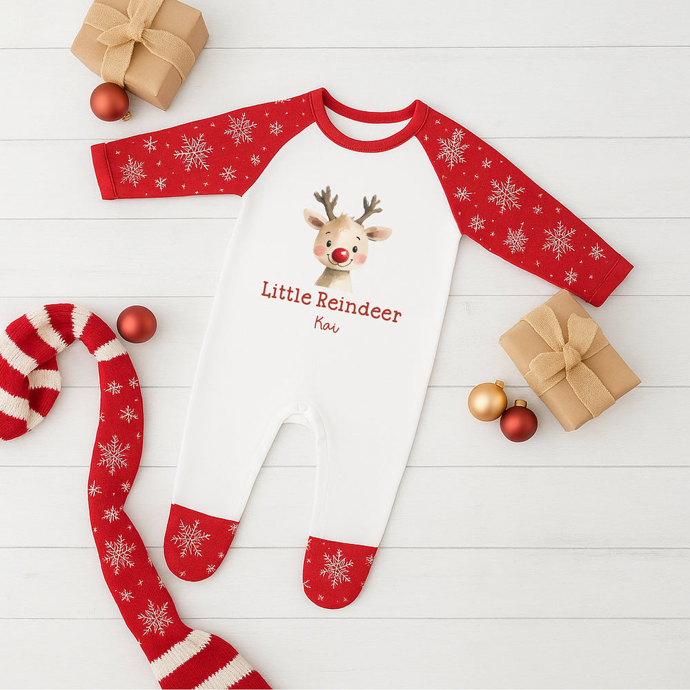 Personalised Reindeer Sibling Matching Snowflake Christmas Babygrow/Pyjamas
