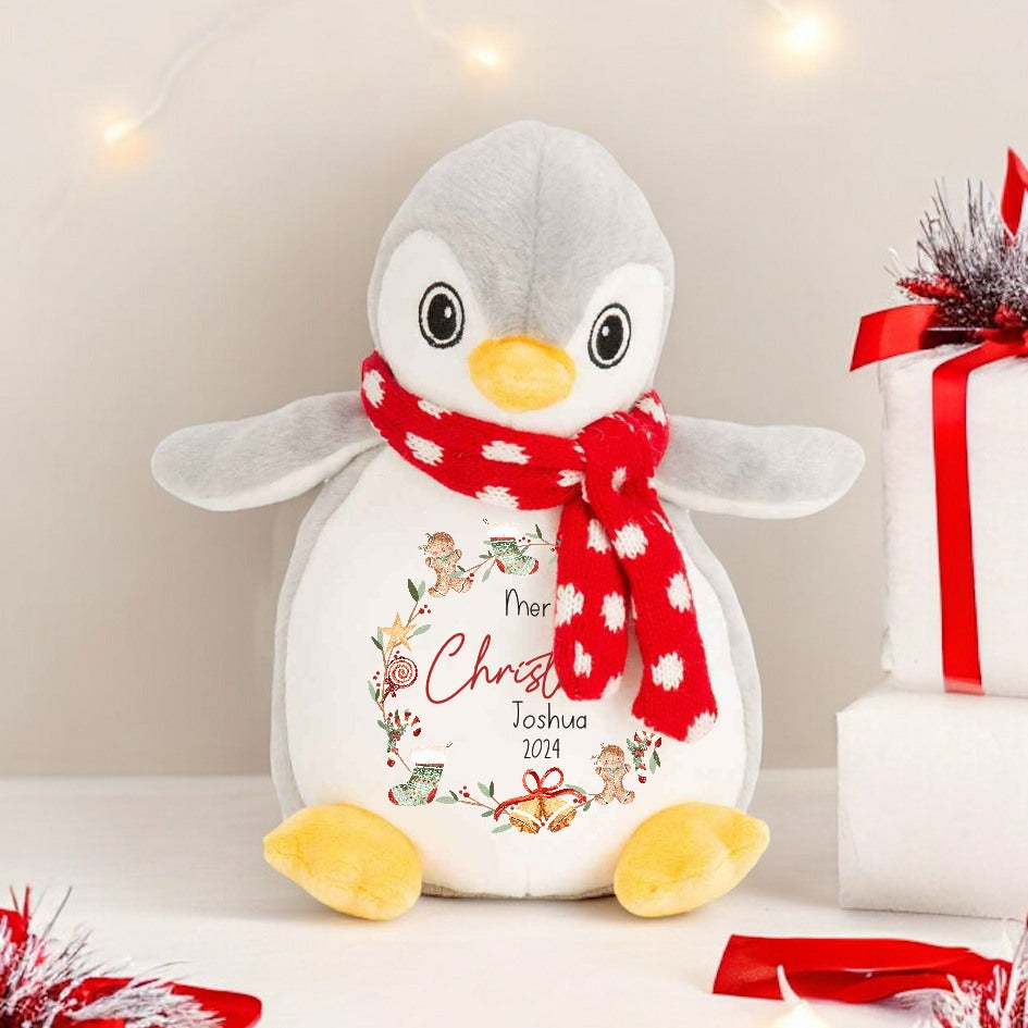Personalised Christmas Wreath Reindeer/Penguin/Bunny Teddy