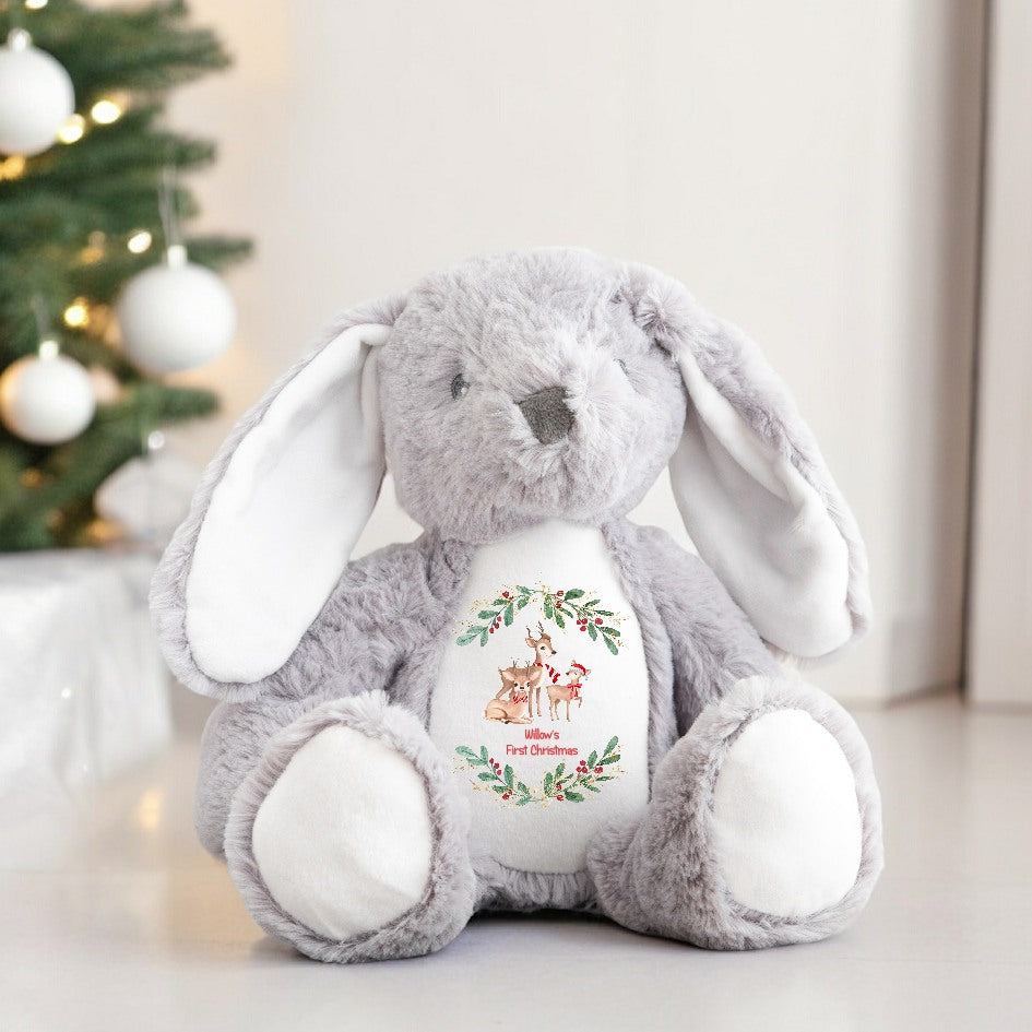 Personalised First Christmas Wreath Bunny/Reindeer Teddy