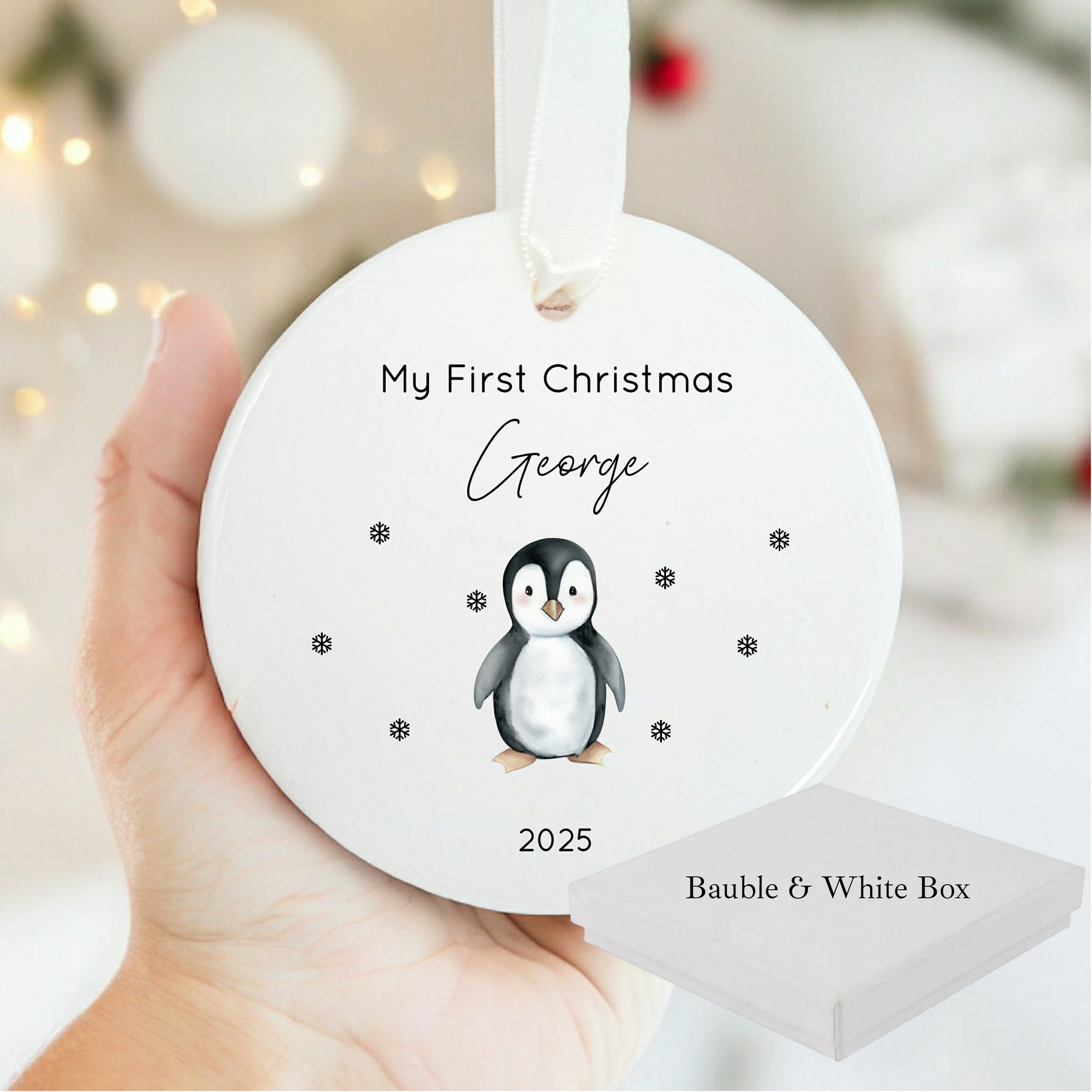 Celebrate a precious milestone with the Personalised My First Christmas Penguin Ceramic Ornament. This charming keepsake features an adorable penguin design and can be customised with your child’s name, making it a heartfelt addition to your holiday decorations. Crafted from durable ceramic, it’s perfect for treasuring your little one’s first festive season and creating lasting memories year after year.