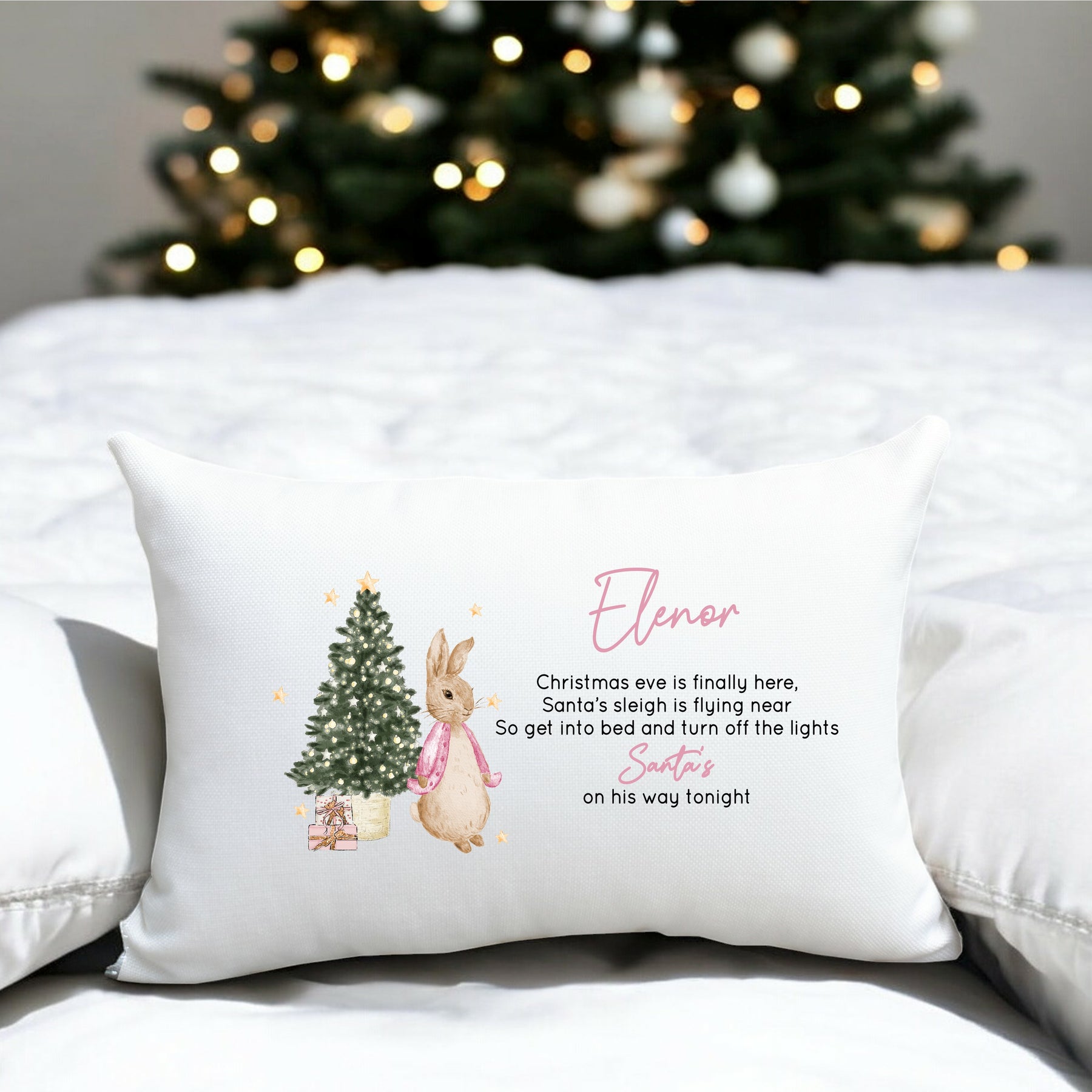 Personalised Pink Rabbit Christmas Eve Pillow Case