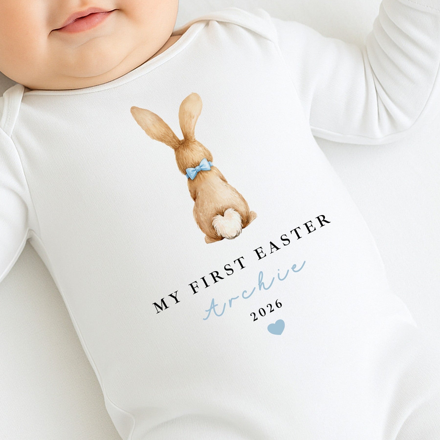 Personalised Blue Bunny My First Easter Baby Grow, Vest or Bib