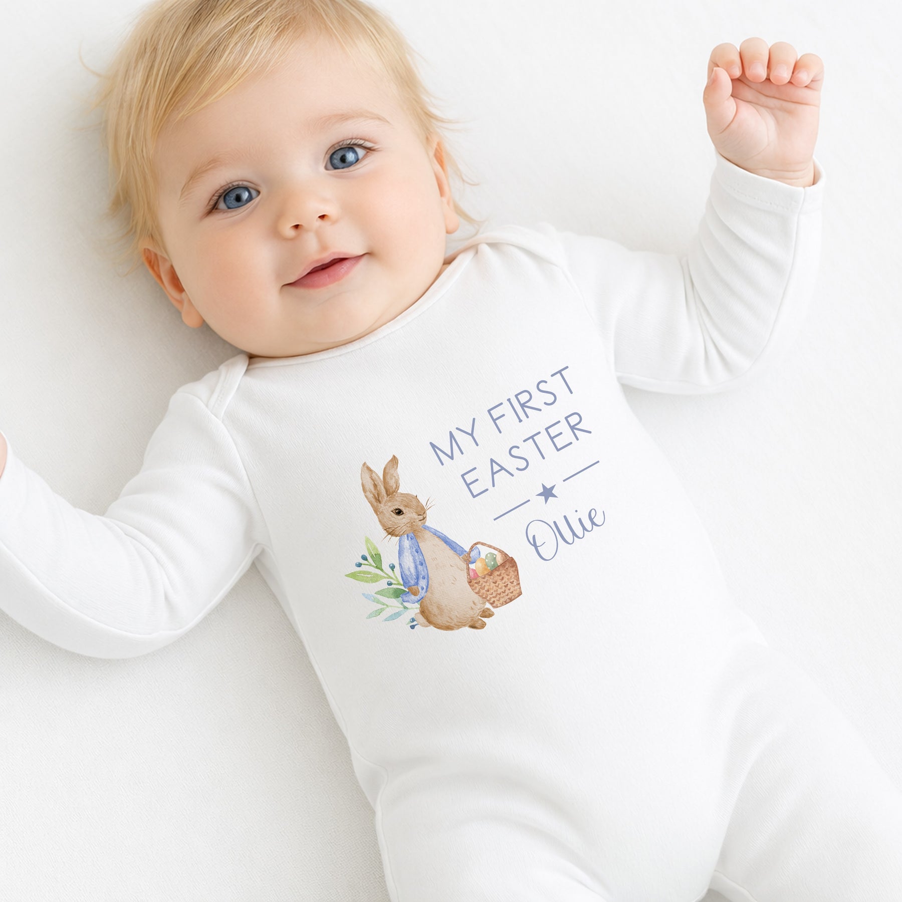 Personalised Blue Rabbit My First Easter Baby Grow, Vest or Bib