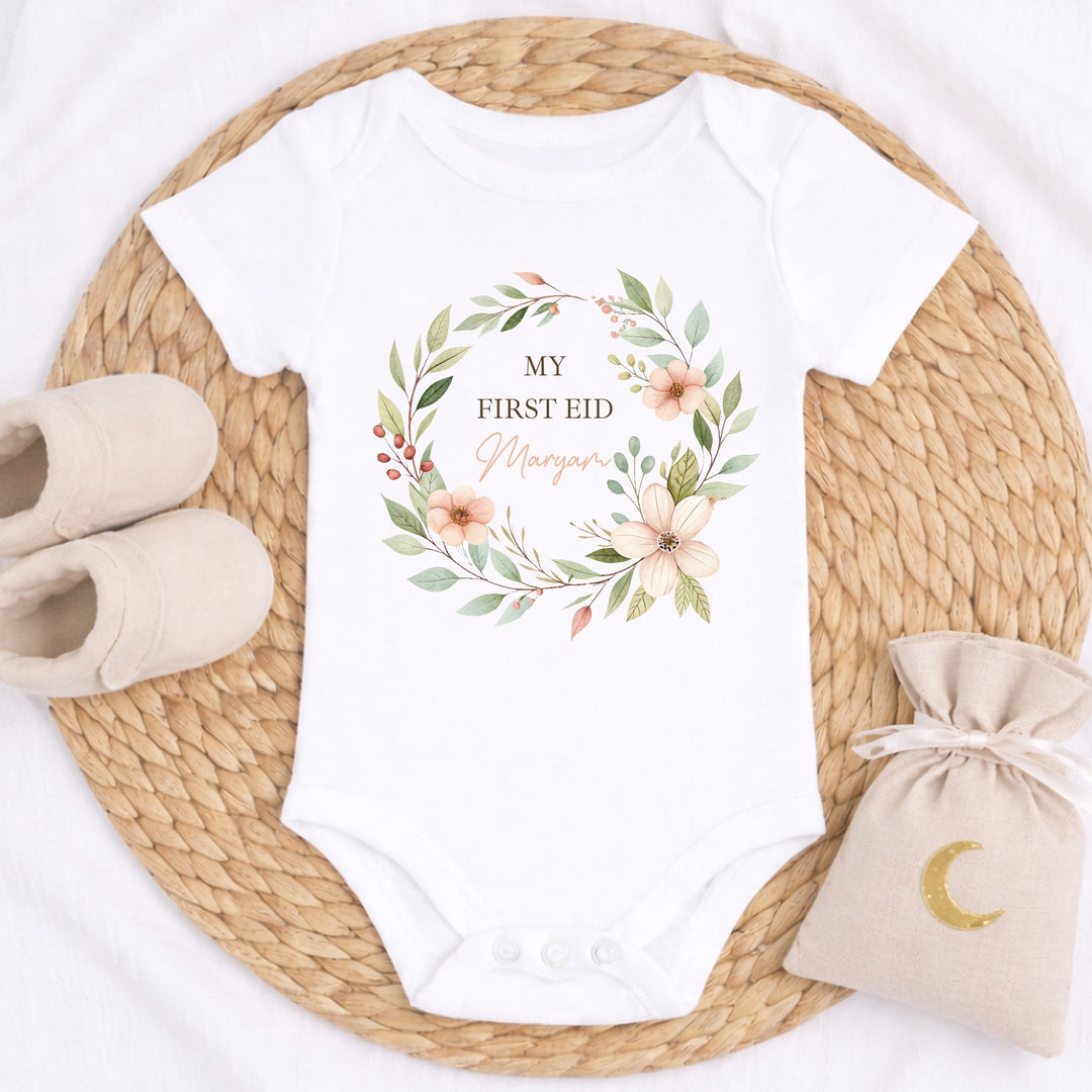 Personalised Floral Wreath My First Eid Baby Grow, Vest or Bib