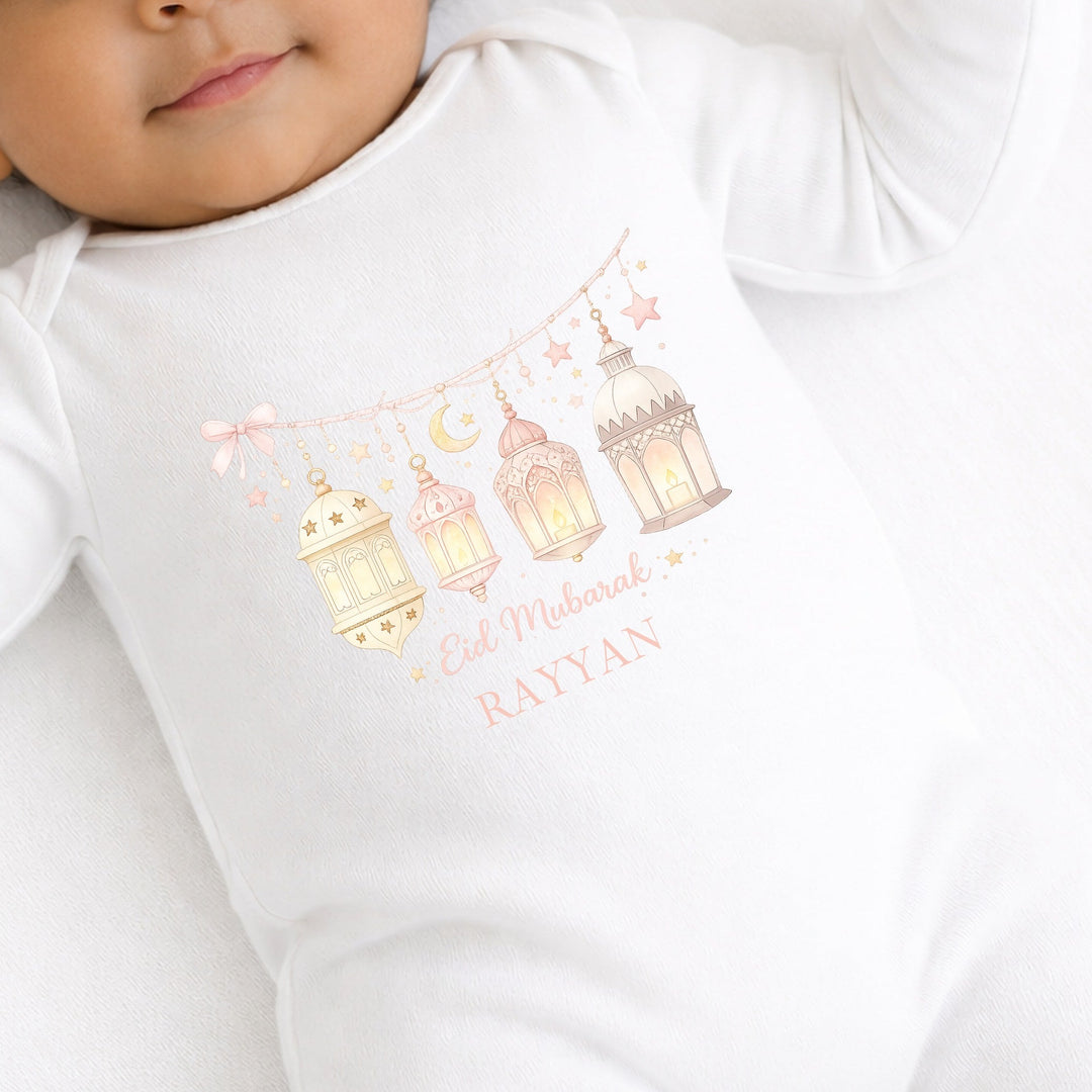 Personalised Pink Eid Mubarak Baby Grow, Vest or Bib