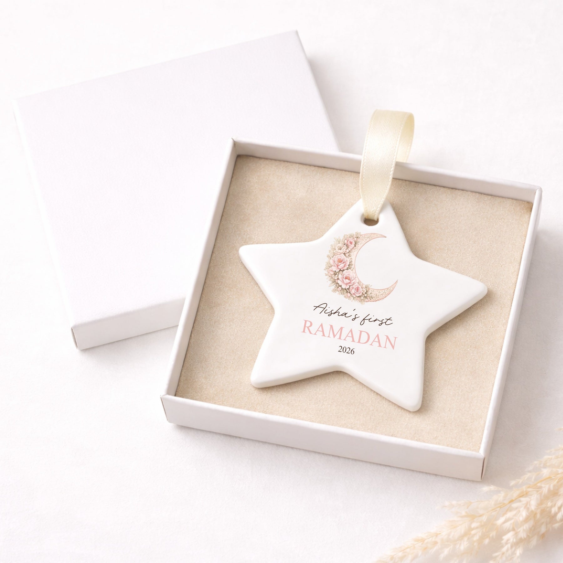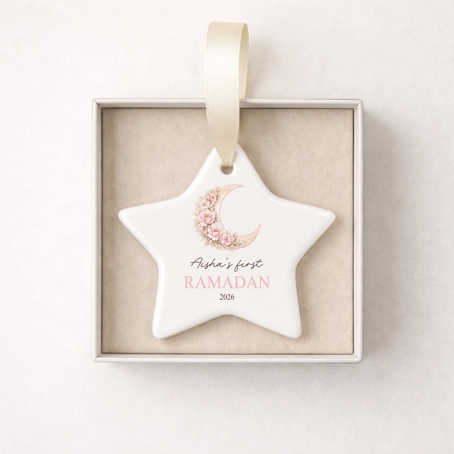 Ideal for display shelves, memory boxes or seasonal décor, this star ornament makes a thoughtful First Ramadan baby gift and a keepsake to treasure year after year. A beautiful way to celebrate a baby’s first Ramadan and commemorate this meaningful moment.