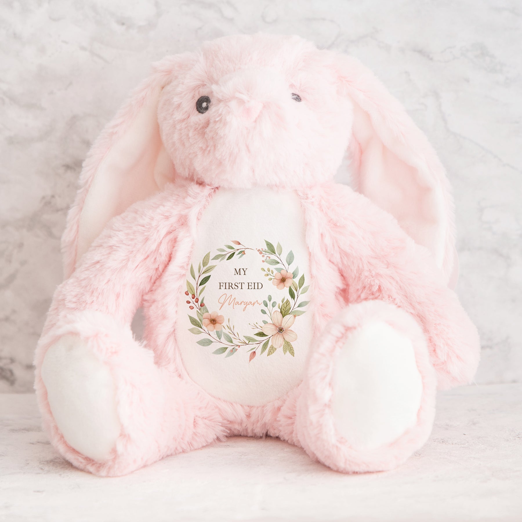 Celebrate a baby’s very first Eid with this beautiful My First Eid personalised soft toy, featuring a soft floral wreath design with the child’s name. A thoughtful Eid keepsake gift for a son, daughter, grandson or granddaughter, perfect for marking this special milestone.