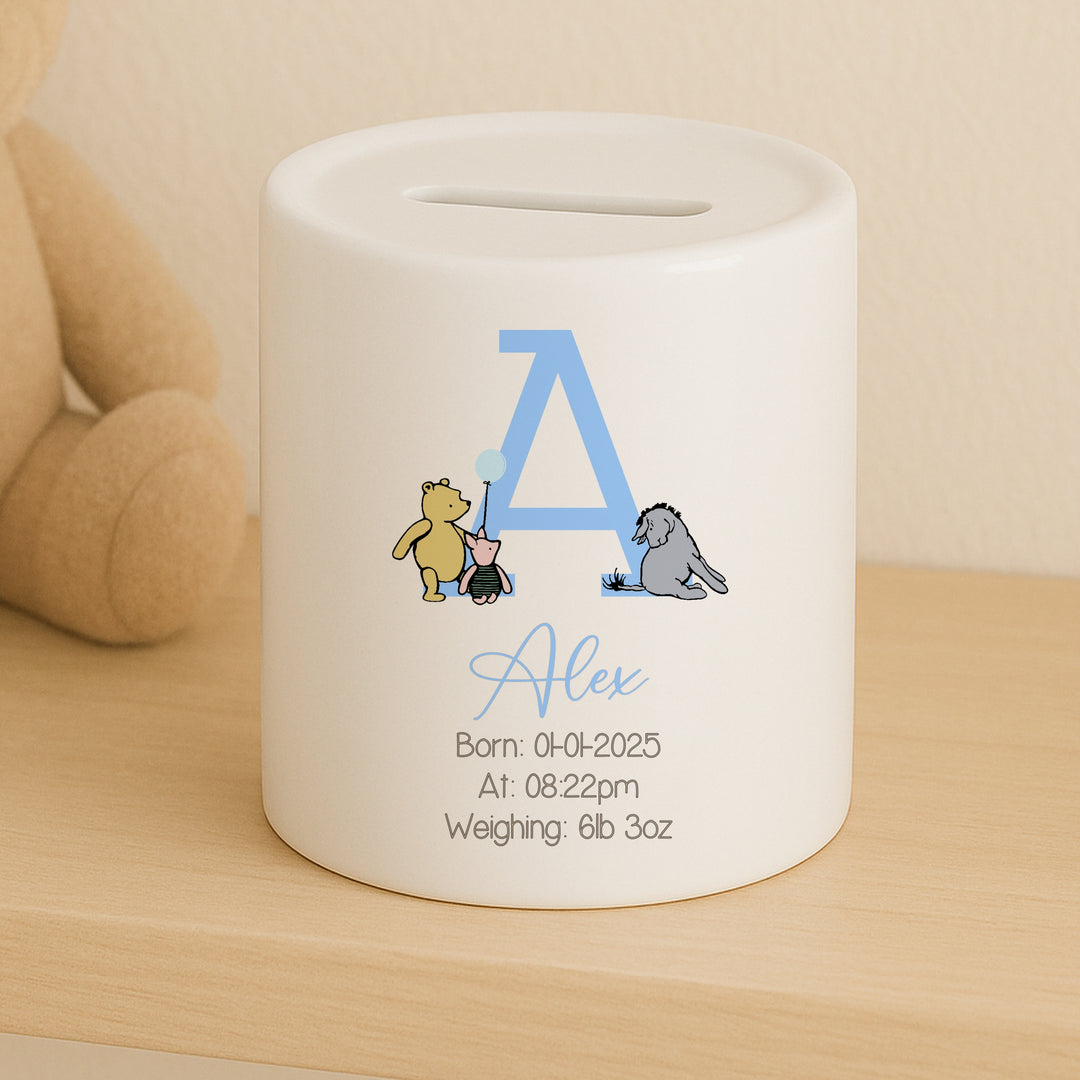 Personalised Sage Green Pooh Bear Ceramic Money Box