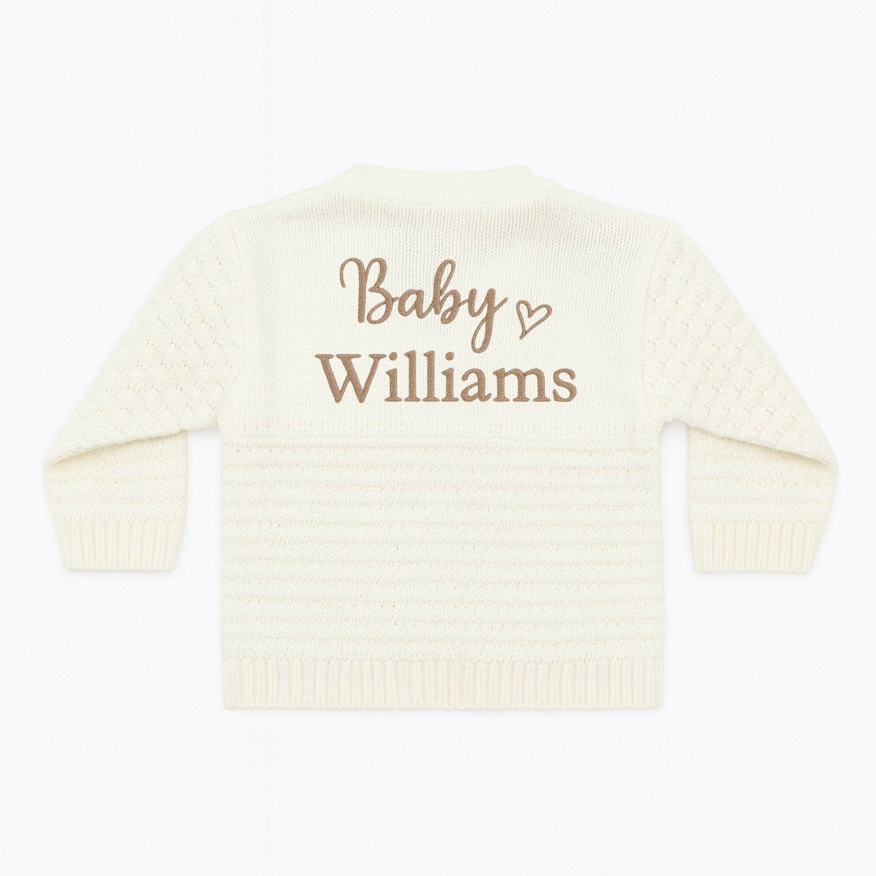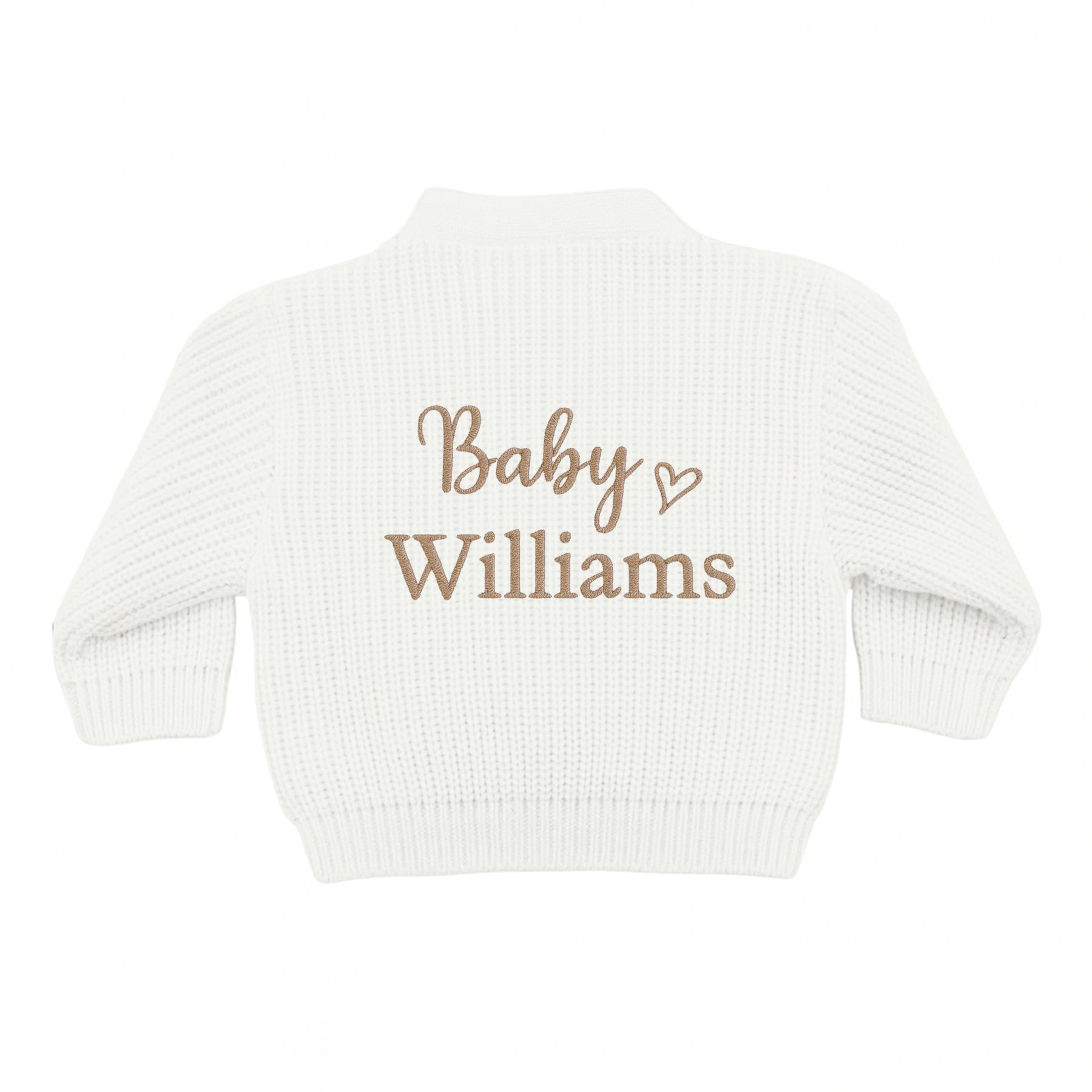 This personalised cardigan adds a special touch to your outfit. Choose from four unique styles to suit your personal style. Each piece is carefully embroidered with your own personalization, making it a truly one-of-a-kind addition to your wardrobe. Add a touch of warmth and personalization to any outfit with this knitted cardigan!