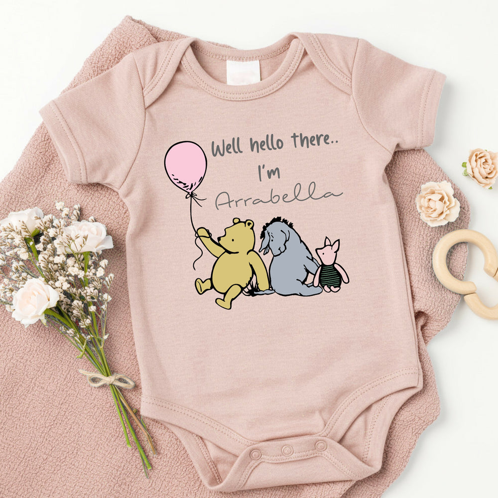 This adorable pink babygrow features a charming Pooh Bear design and can be personalised to make it truly special for your little one. Crafted for comfort and cuteness, it’s perfect for everyday wear or as a thoughtful gift. Optional matching accessories are available to complete the look, making it easy to create a coordinated outfit that celebrates your baby’s unique charm.