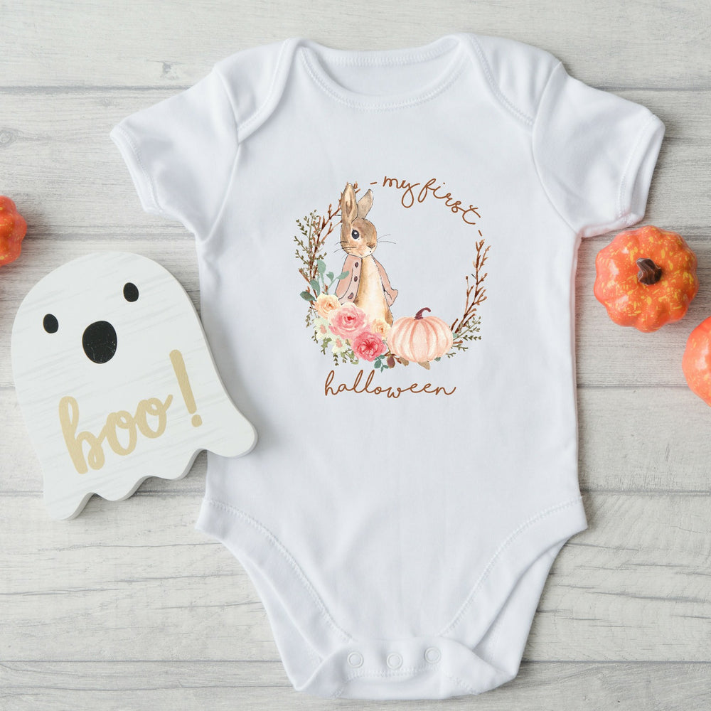 First Halloween Pink Bunny Wreath Baby Outfit