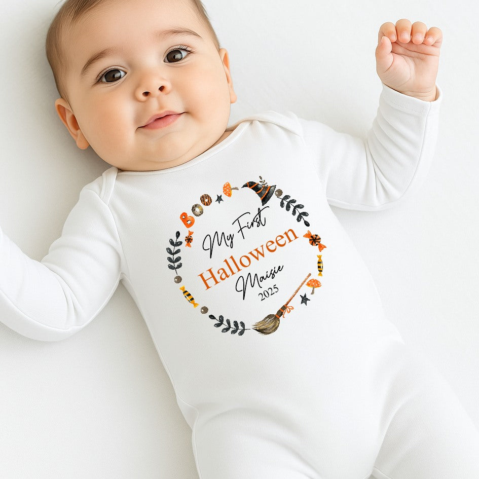 Personalised My First Halloween Wreath Babygrow/Vest/Bib
