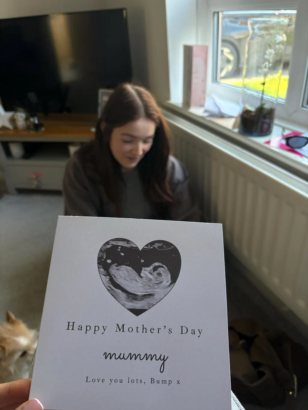 This Mother’s Day card from the bump is a heartfelt way to celebrate a mum-to-be or nanny-to-be on Mother’s Day. Featuring a scan-style image inside a heart with the message “Love you lots, Bump x”, it’s a meaningful keepsake that captures the excitement of pregnancy.