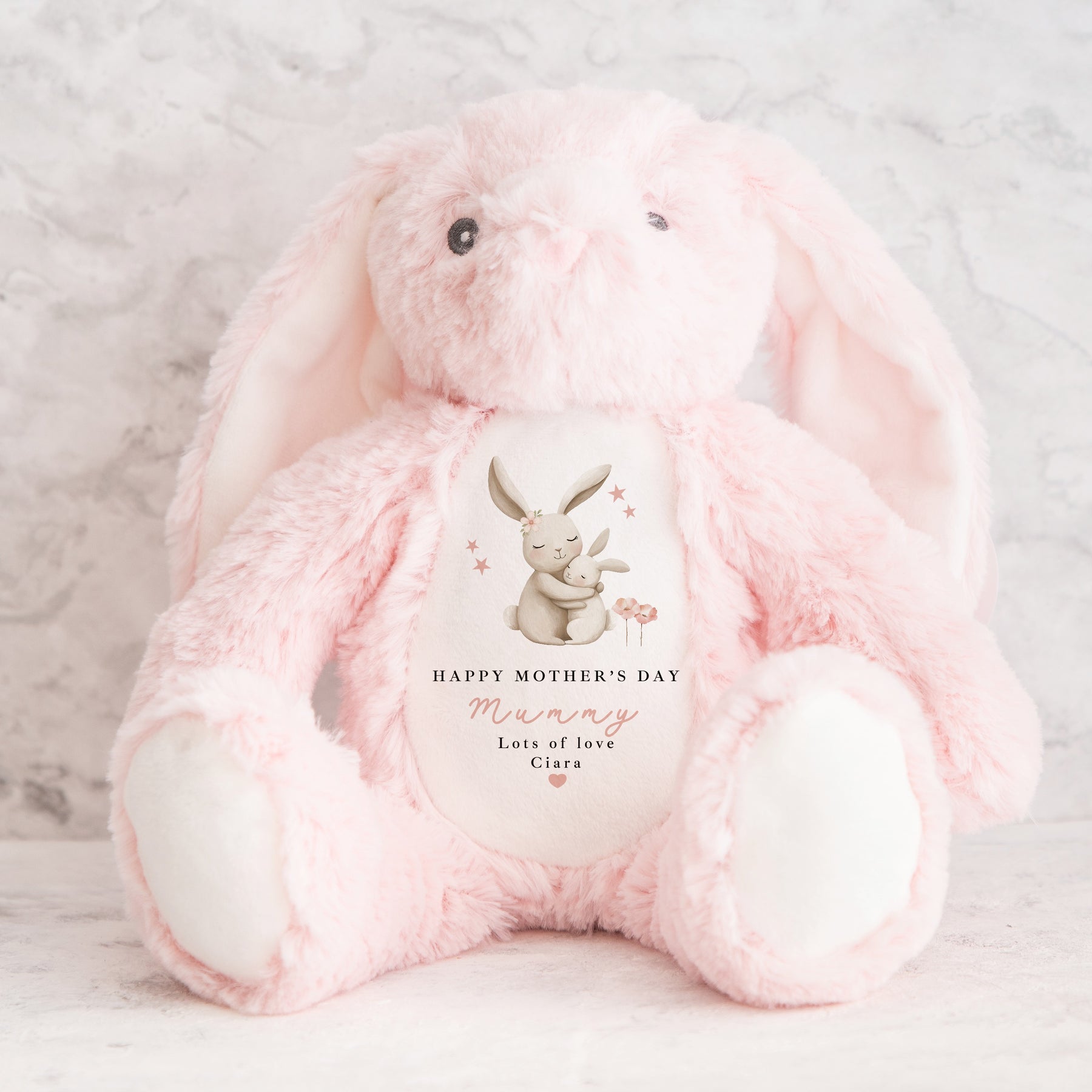 Celebrate a beautiful first Mother’s Day with this adorable Mother’s Day gift from child, featuring a sweet mummy and baby bunny illustration and the message “Happy Mother’s Day Mummy.” Finished with a personalised name sign-off, this soft toy is a heartfelt keepsake that perfectly captures the love between mum and her little one.
