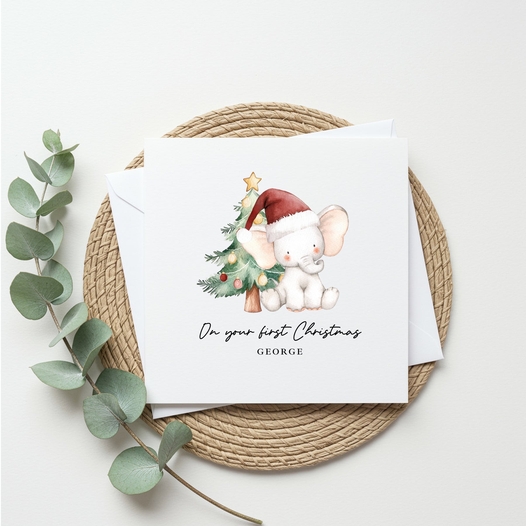 Personalised Elephant On Your First Christmas Card