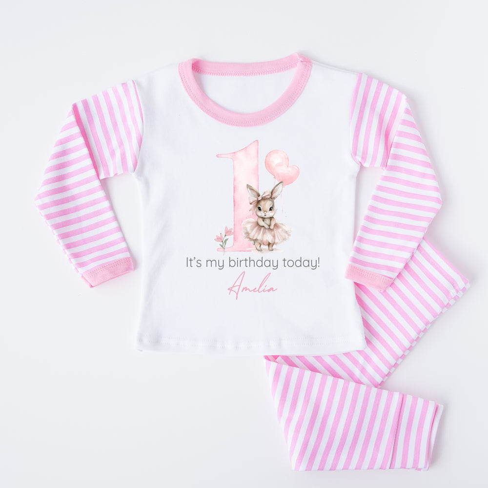 Personalised Ballerina Bunny Pink Stripe Birthday Pyjamas