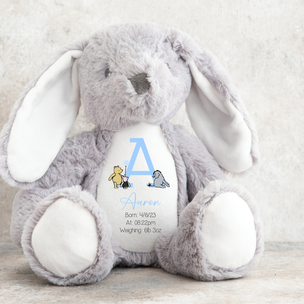 Celebrate your little one's arrival with this Personalised Blue Pooh Bear Birth Announcement Teddy. Soft and cuddly, this charming teddy can be customized with your baby's name and birth details, creating a heartfelt keepsake. Perfect for nursery décor or as a thoughtful gift, it offers comfort and a lasting memory of those precious early days.