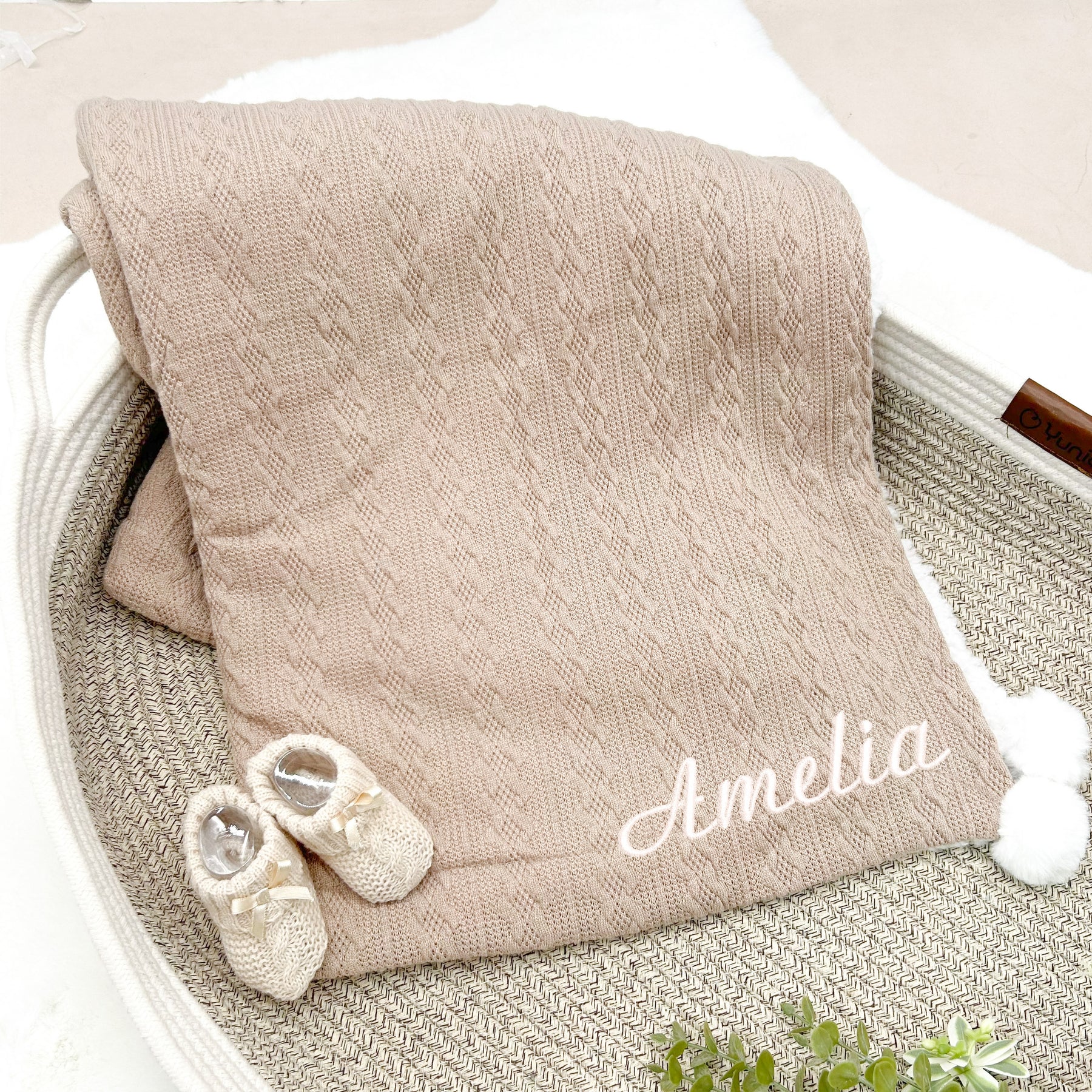 Keep warm in style with our luxuriously soft Personalised Embroidered Coffee Knitted Pompom Blanket. Perfect for adding a personalised touch to any home.