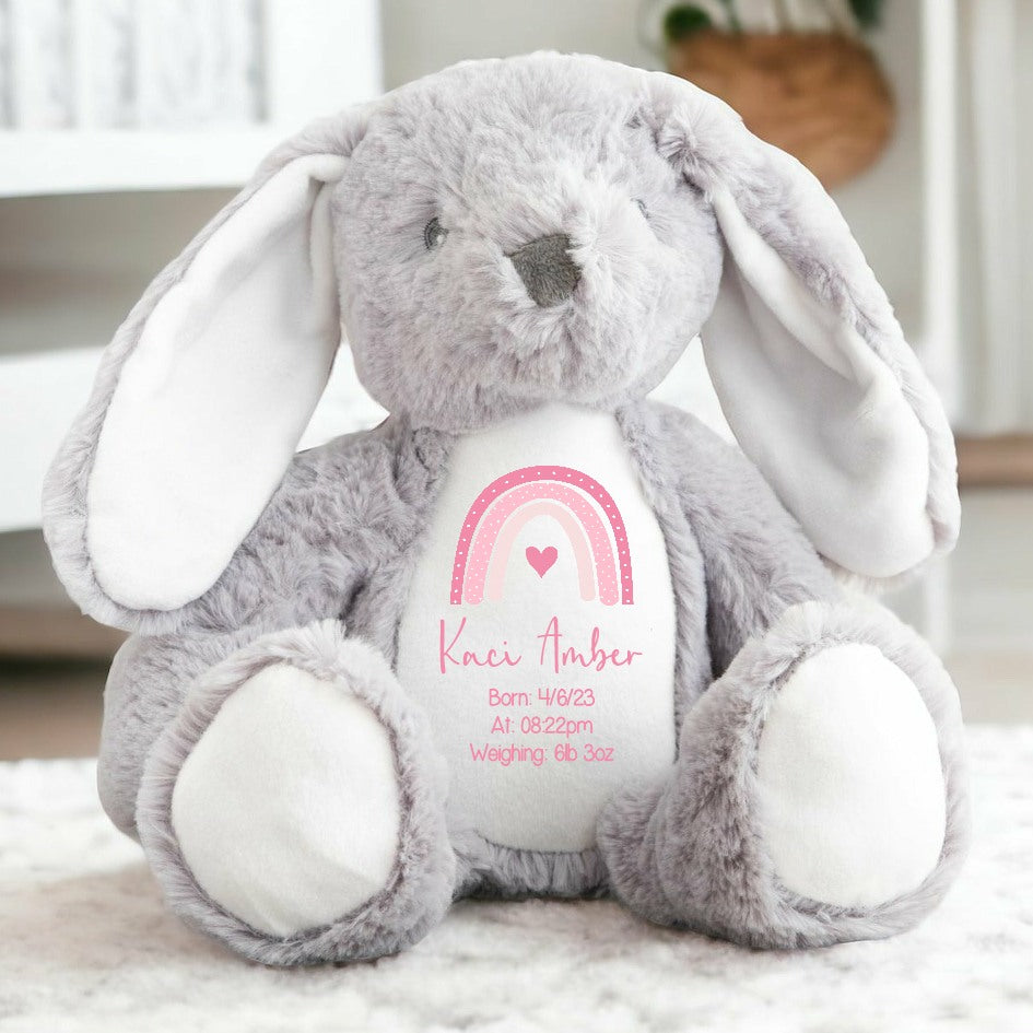 Personalised Pink Rainbow Heart Birth Announcement Teddy