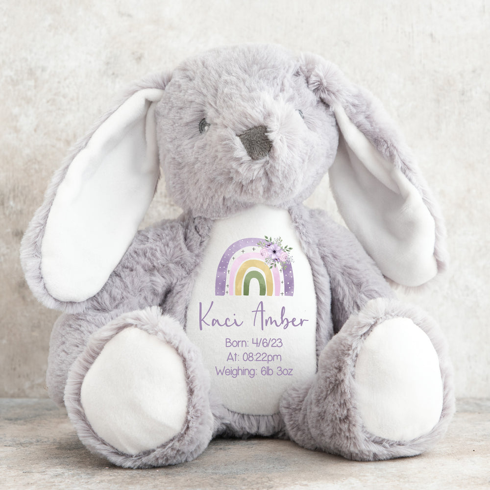 Personalised Purple Floral Rainbow Birth Announcement Teddy