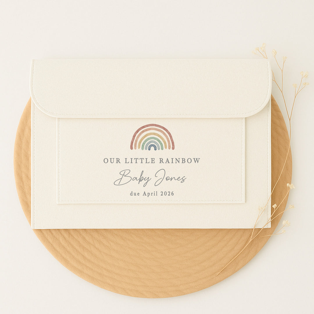 Personalised Beige Rainbow Pregnancy/Maternity Notes Cream Folder