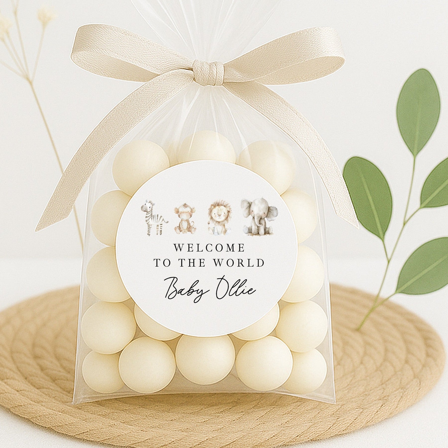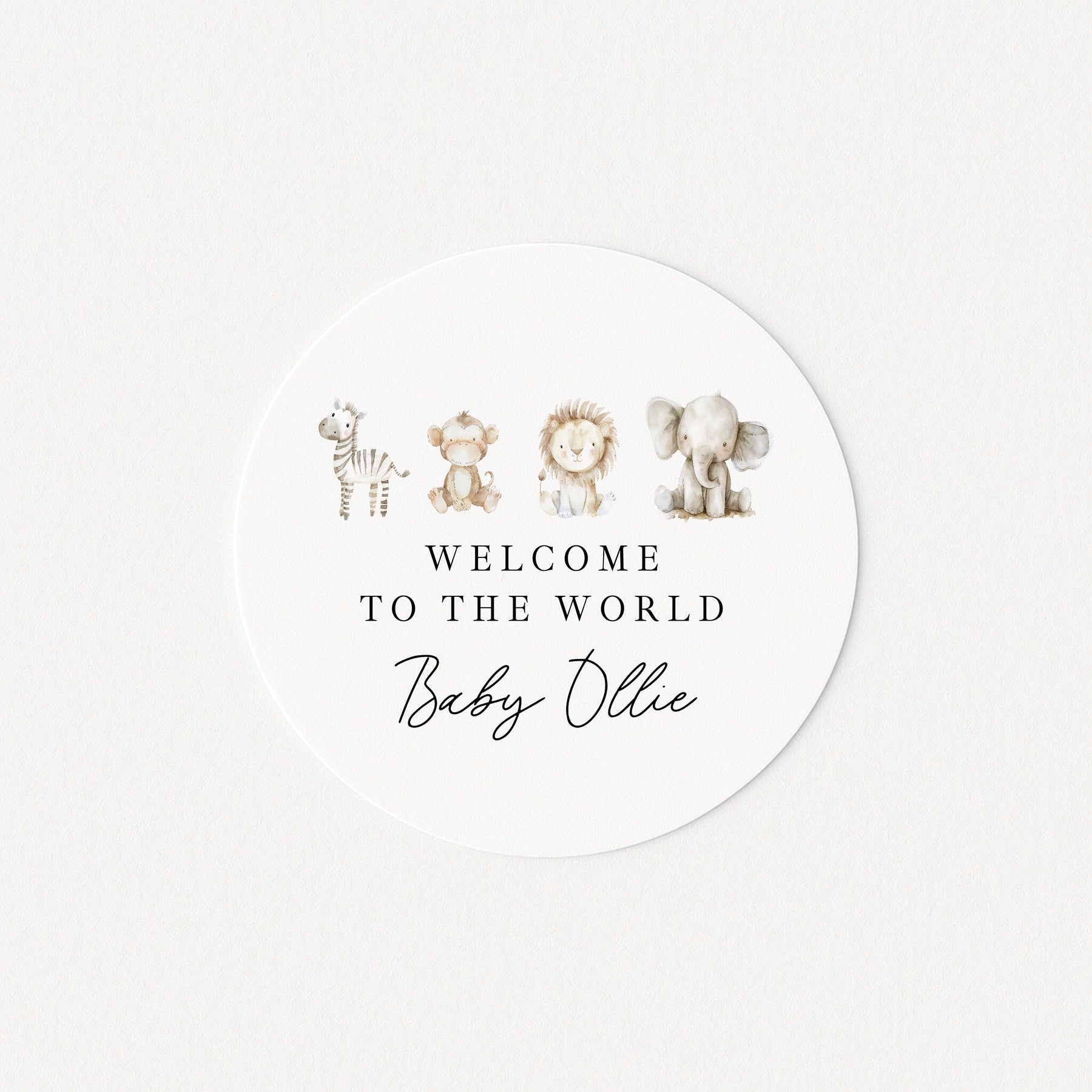 Personalised Water Colour Safari Baby Shower Sticker